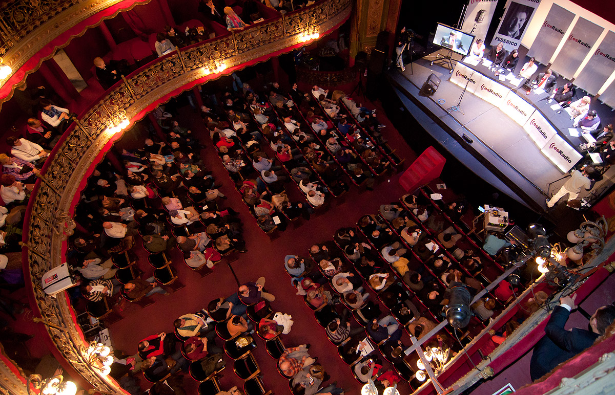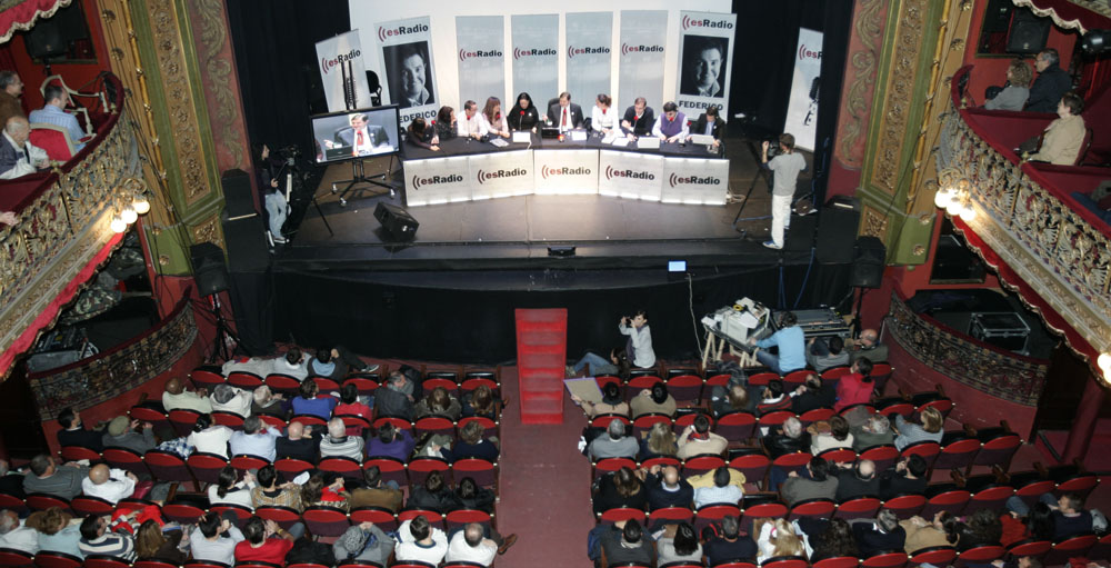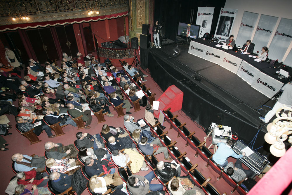 Una foto en plano general del Teatro Lara durante el programa en directo.
