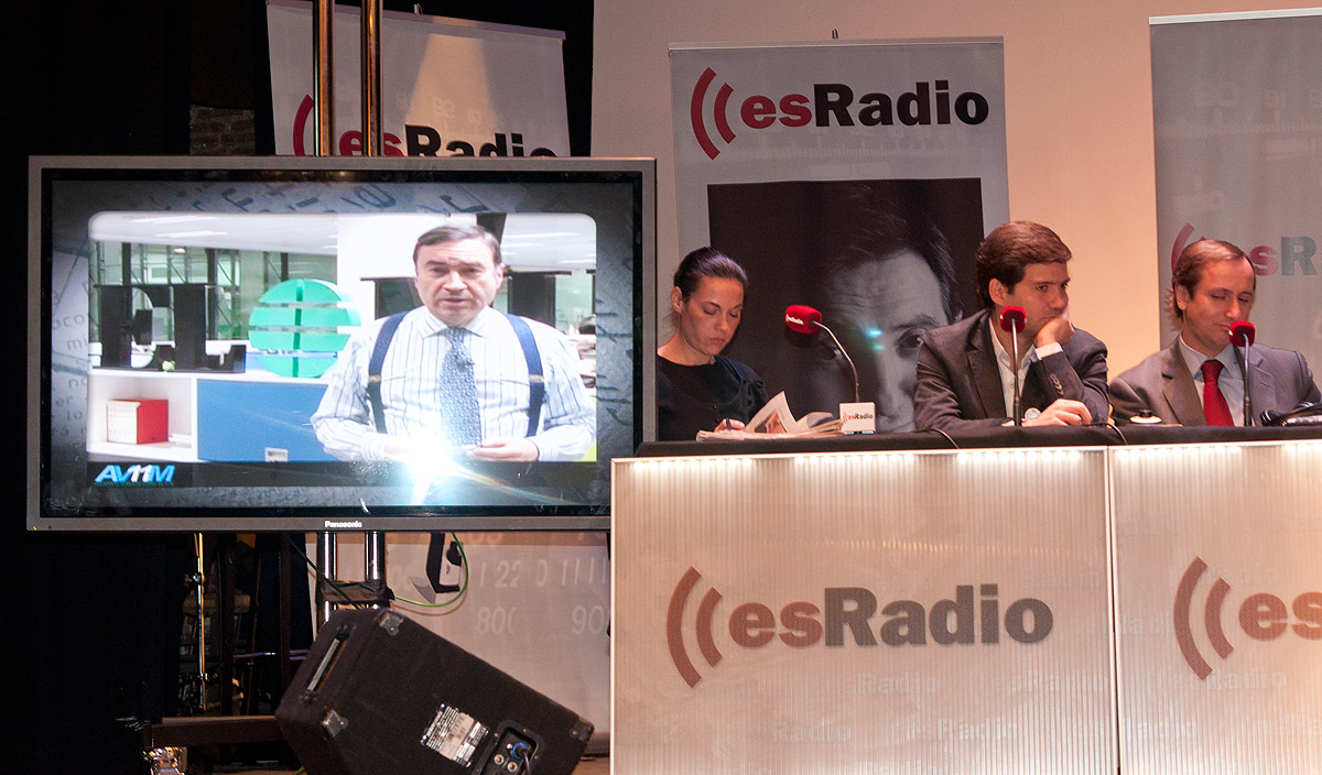 Momento en el que se ofrecía el mensaje grabado por Francisco Marhuenda, director de La Razón