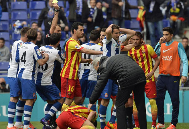 Federico Jiménez Losantos analiza junto a Vicente Azpitarte la actualidad deportiva de la jornada de la que destaca la polémica del partido Espanyol - Barcelona. El árbitro Clos Gómez no pitó un claro penalti a favor del Espanyol y después sí pitó otro a favor del Barça que no era. También ha hablado del Madrid - Rayo y del Athletic de Bilbao - Atlético. En el horizonte, los cuartos de final de la Champions League.