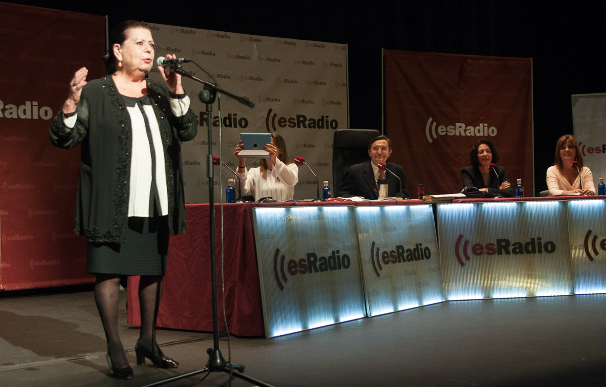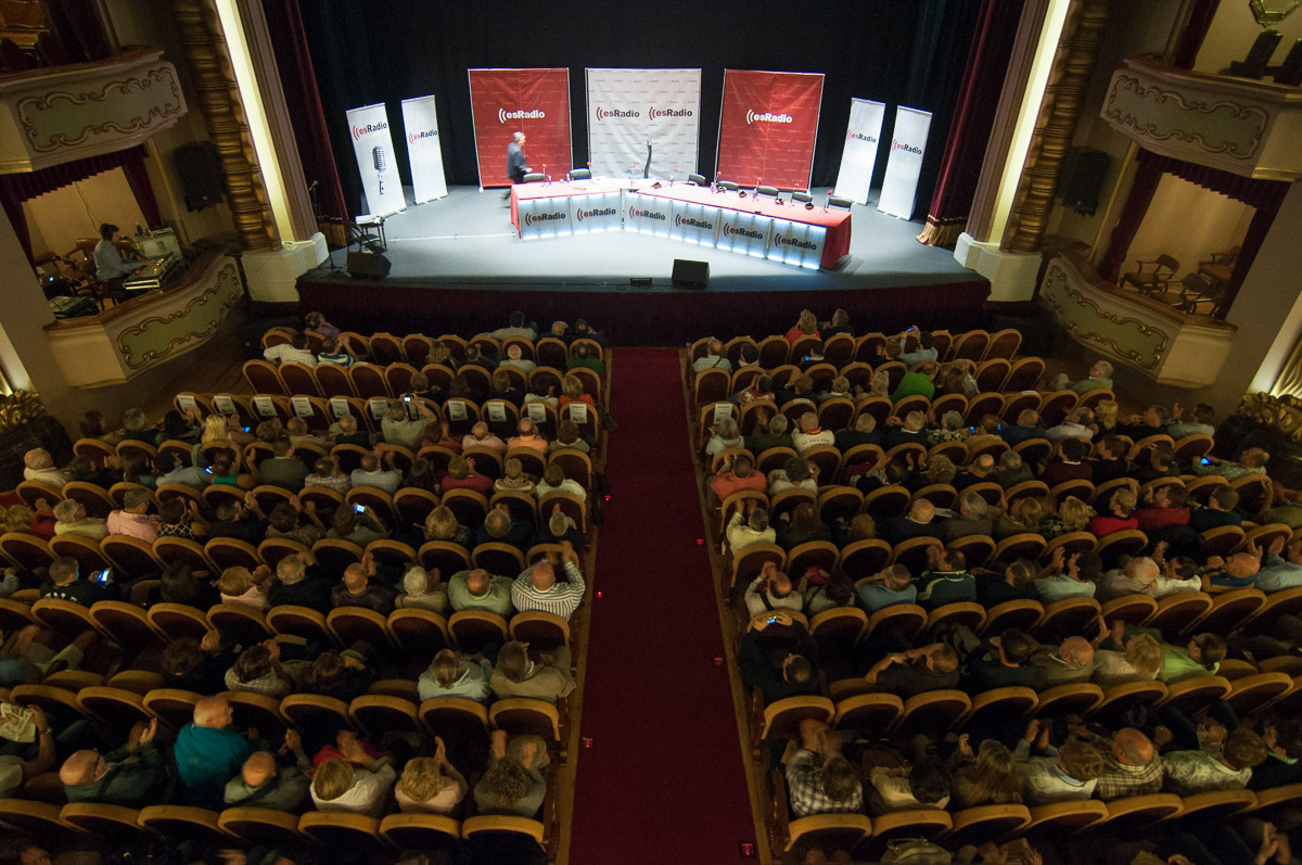 Federico Jiménez Losantos, Vanesa Vallecillo e Isabel González arrancan el tramo horario de las 8 de la mañana con un teatro Jovellanos lleno y que recibió a Es la Mañana de Federico con una grandísima ovación