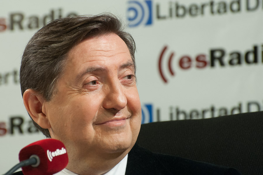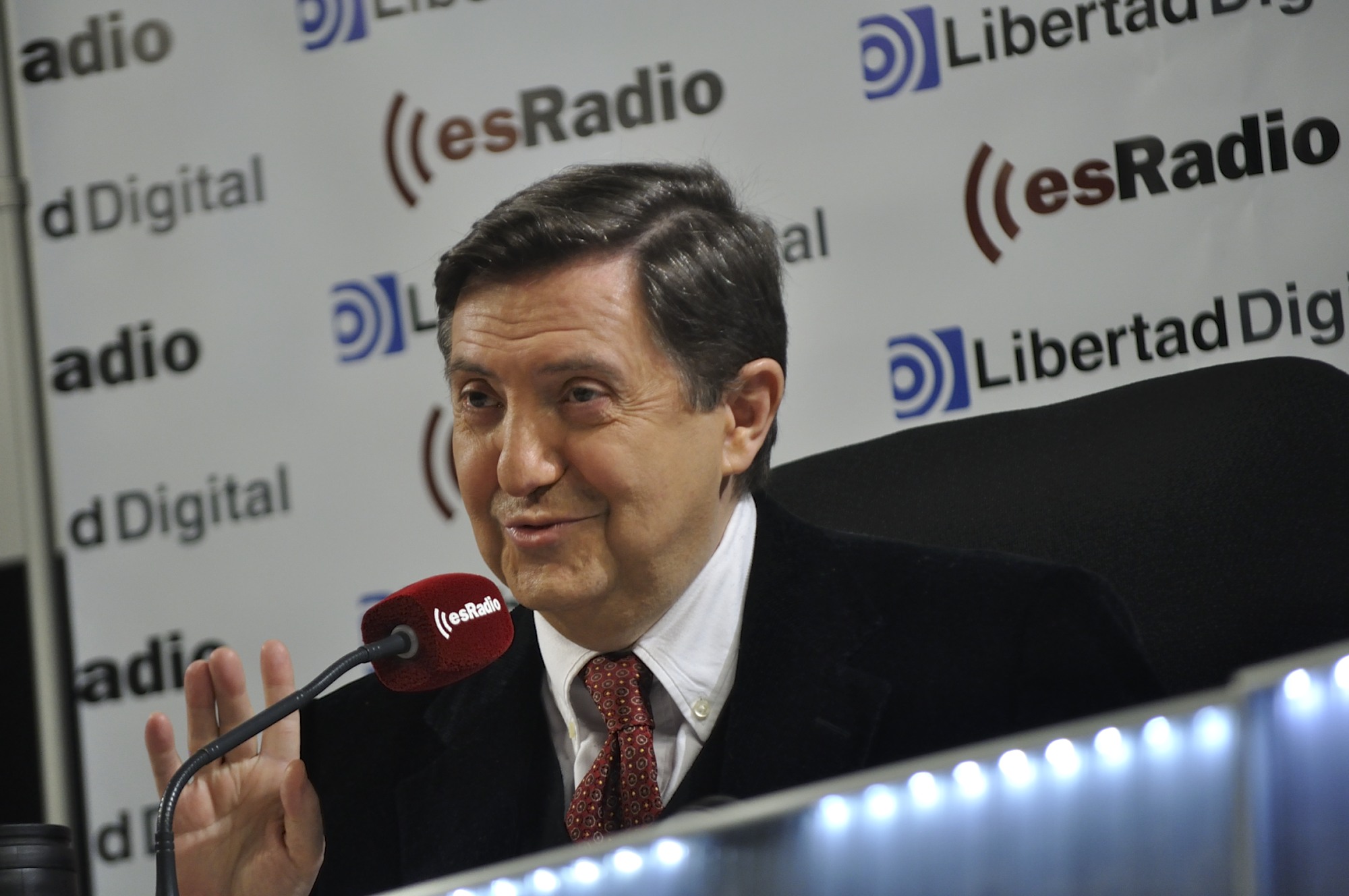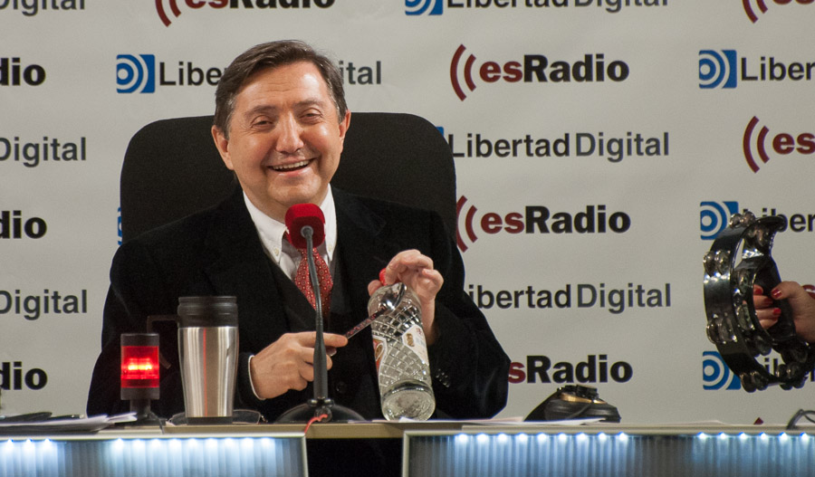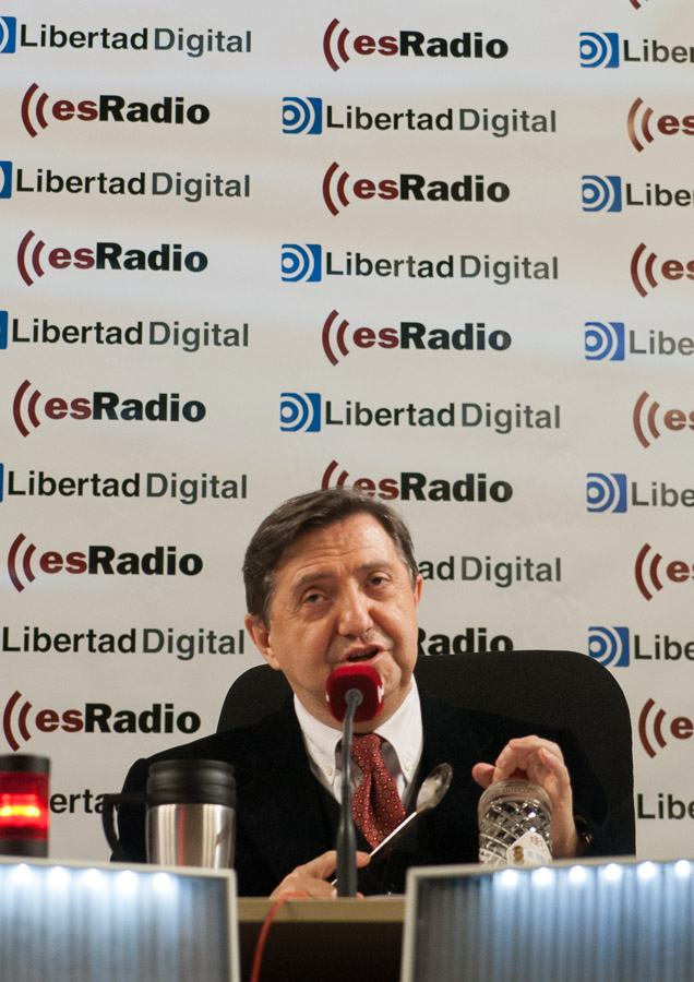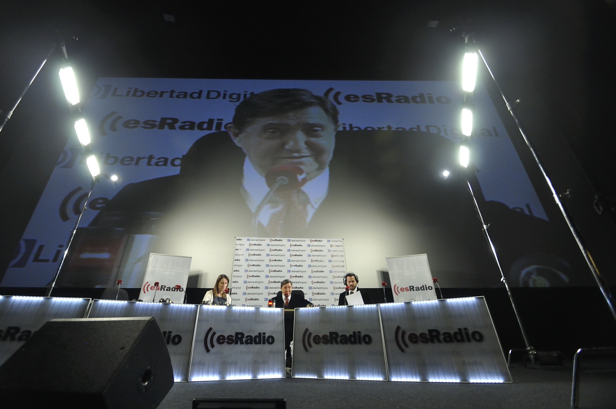 Federico Jiménez Losantos en un momento de la emisión en directo de Es la Mañana de esRadio en el cine Palafox de Madrid