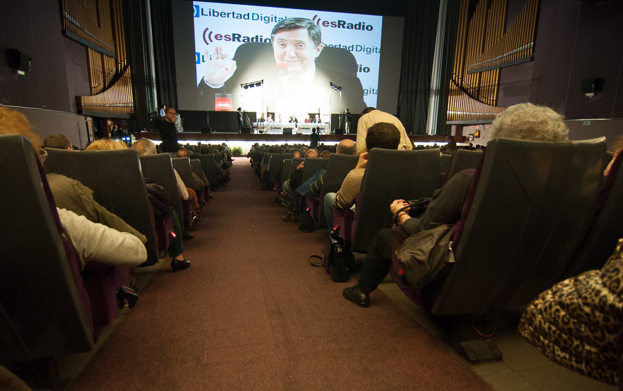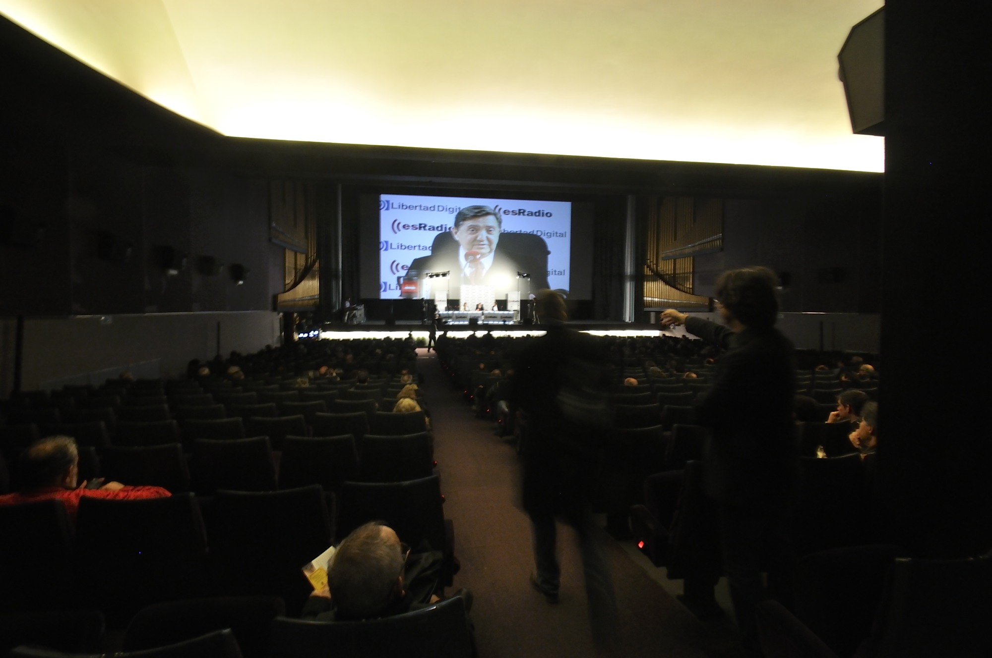 Vista desde el patio de butacas del cine Palafox, con Federico Jiménez Losantos en la pantalla gigante