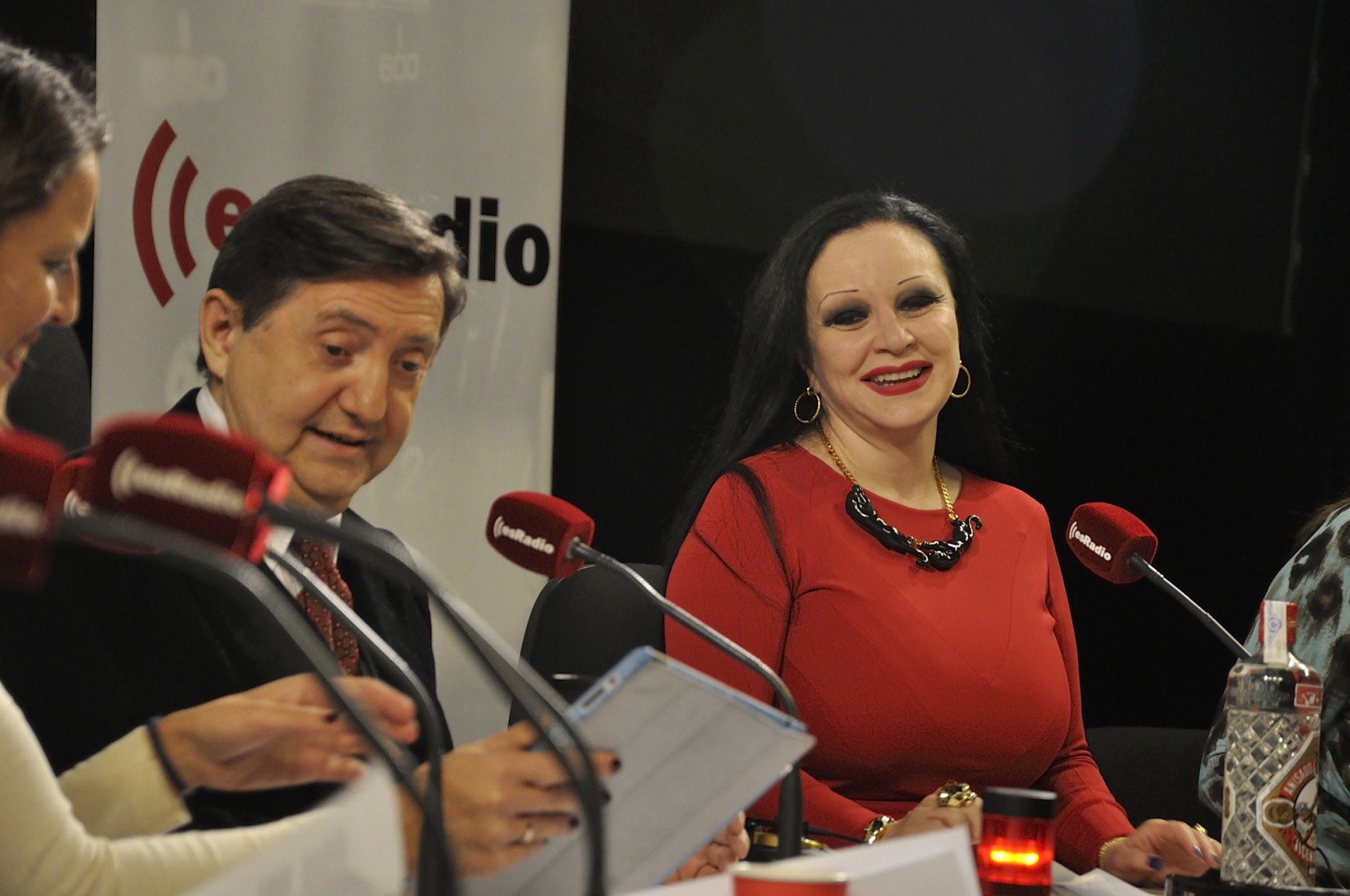 Alaska, colaboradora de la Crónica Rosa, es recibida con un beso por Federico Jiménez Losantos