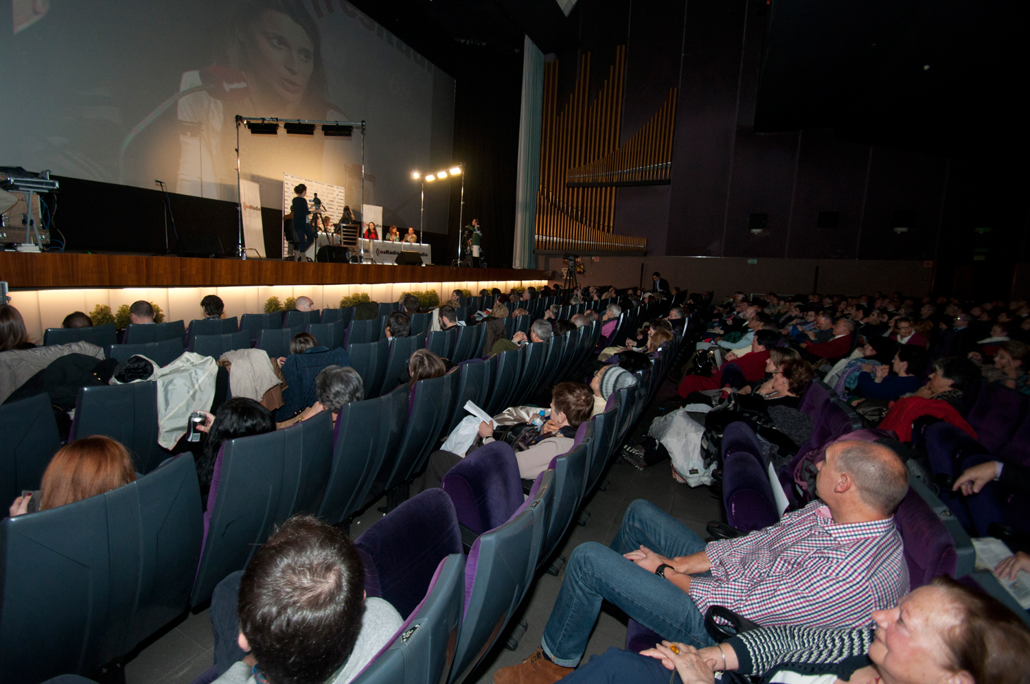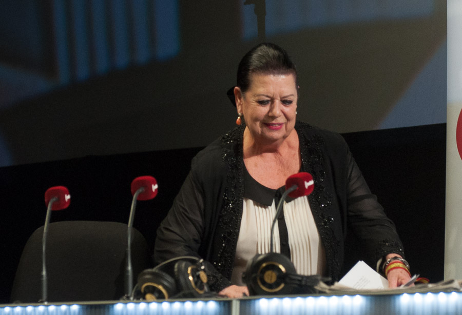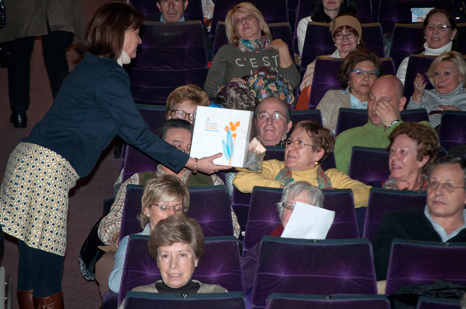 Isabel González sigue atentamente el desarrollo del programa en el cine Palafox de Madrid