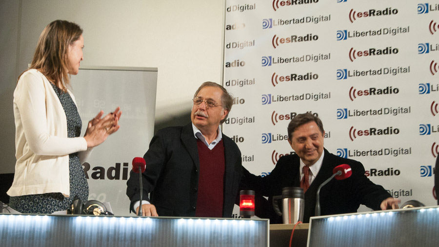 Isabel González, Luis Herrero y Federico Jiménez Losantos, momentos antes de empezar la tertulia de Es la Mañana