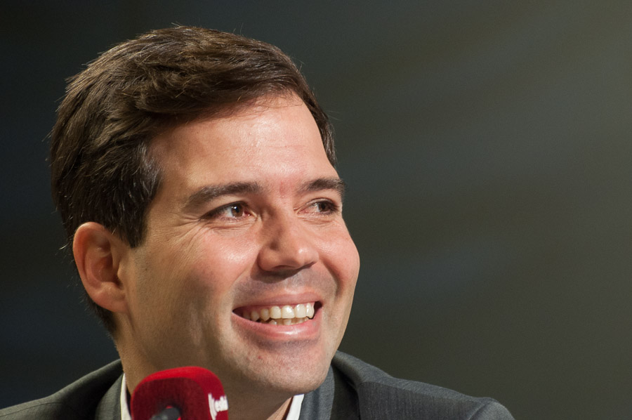 Sonriente primer plano de Dieter Brandau, director de Es la Tarde y tertuliano de Es la Mañana de esRadio