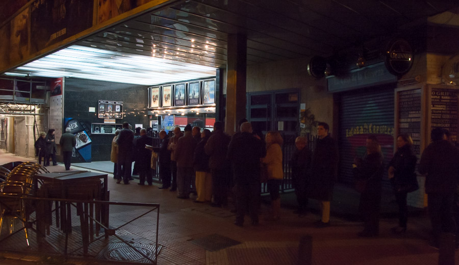 Cola de oyentes de Es la Mañana antes de acceder al cine Palafox de Madrid