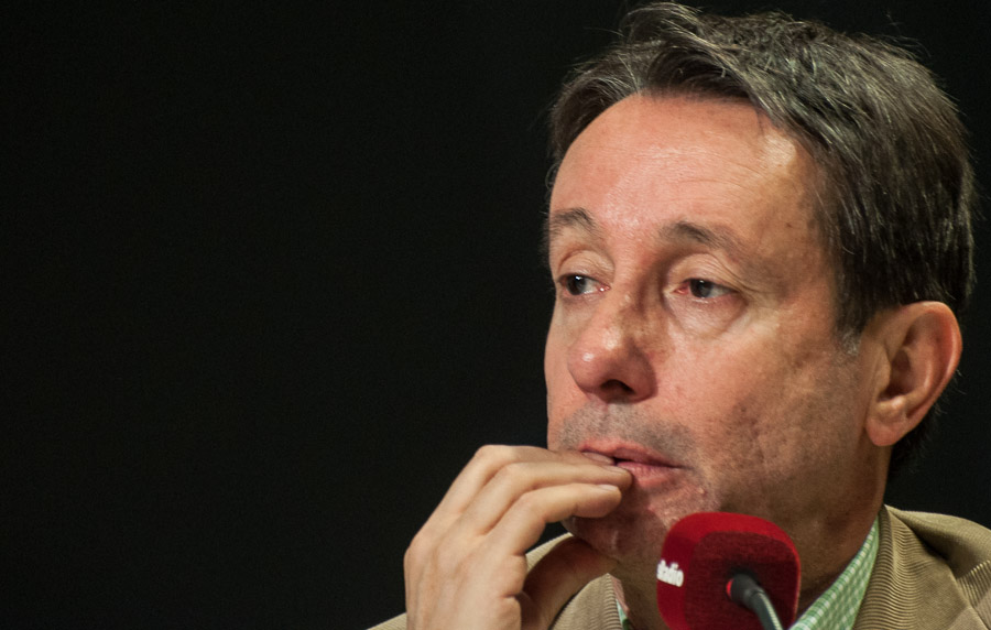 Primer plano del director de Es la Mañana de esRadio en un momento de la emisión en directo del programa desde el cine Palafox de Madrid