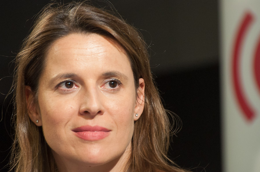 Beatriz Cortázar, en un sonriente primer plano, en un momento de su intervención en Es la Mañana de Federico desde el cine Palafox de Madrid
