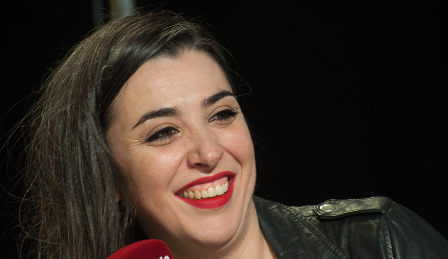 Nancy O sonríe en un primer plano durante la emisión en directo en el cine Palafox del Patio de Butacas de Es la Mañana