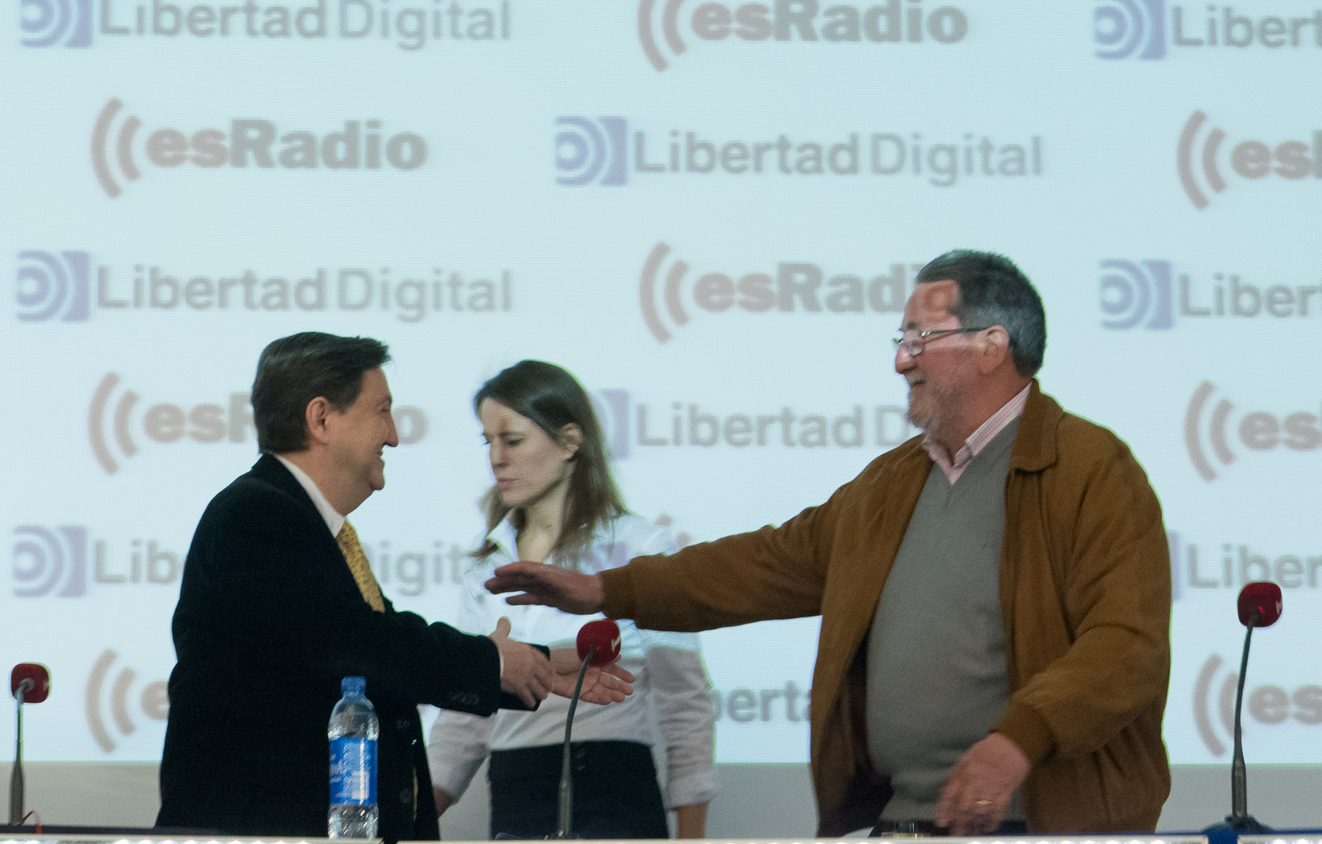 Federico Jiménez Losantos saluda a Pedro de Tena, corresponsal en Andalucía de esRadio y Libertad Digital