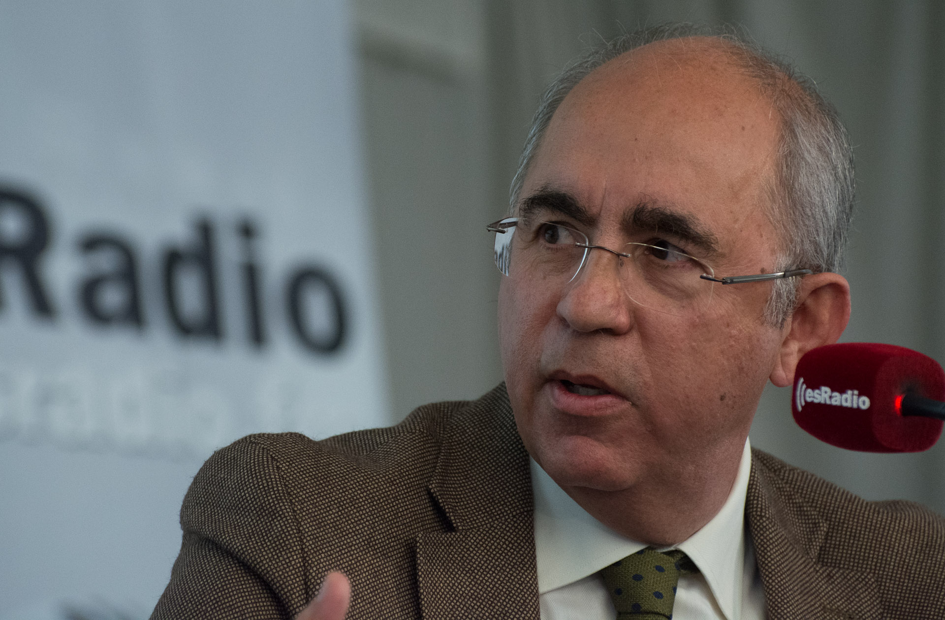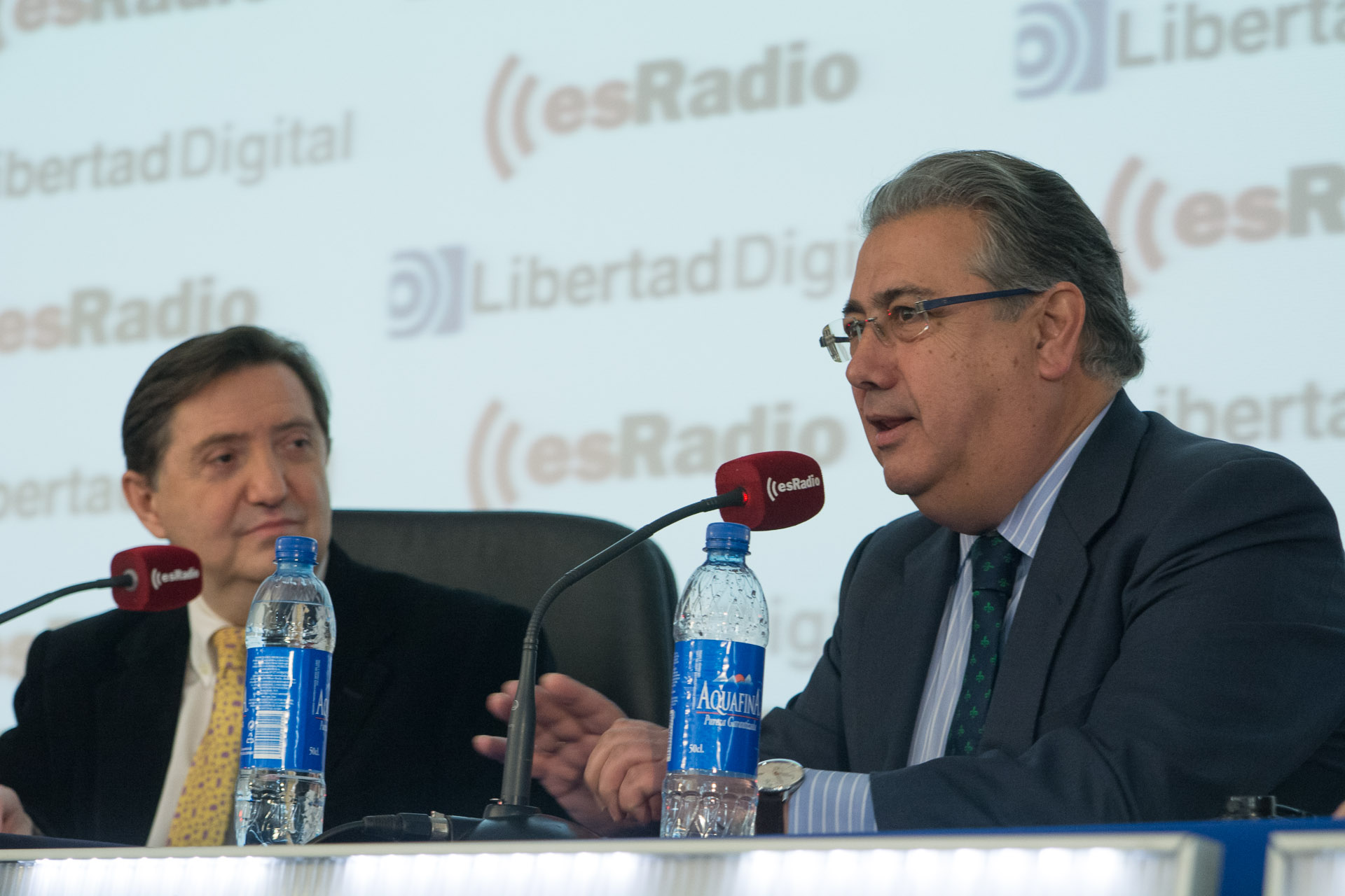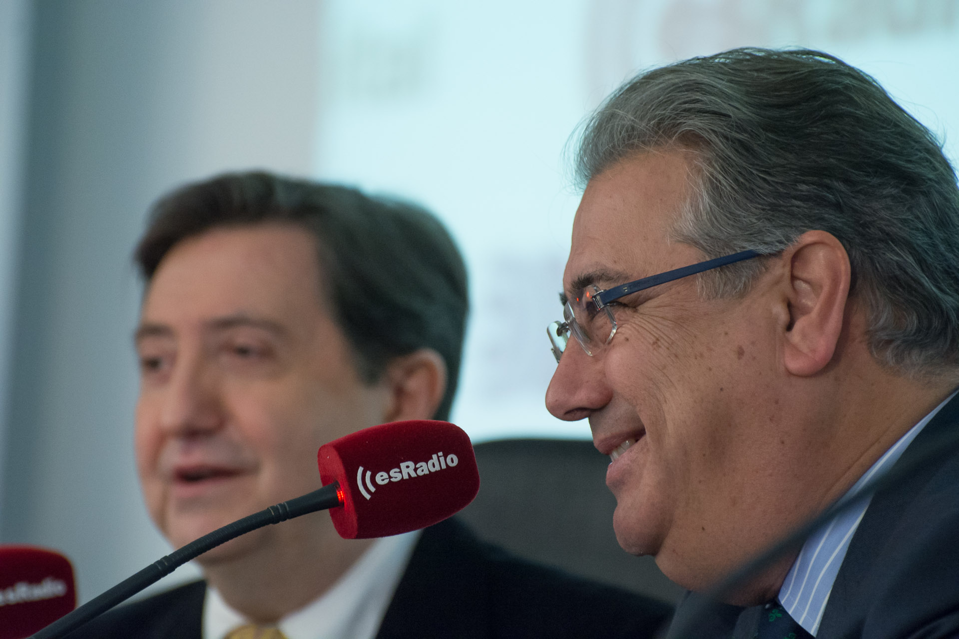 Primer plano del alcalde de Sevilla, Juan Ignacio Zoido, con Federico Jiménez Losantos al fondo