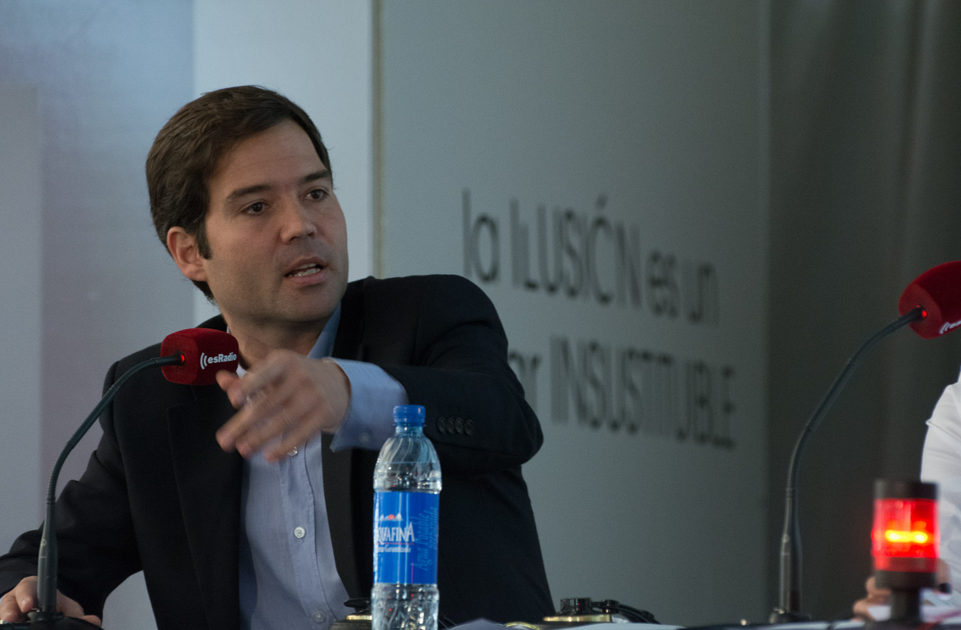 Dieter Brandau, director de Es la tarde en esRadio y tertuliano de Es la Mañana de Federico, interviene durante la emisión en directo del programa en centro universitario EUSA de Sevilla