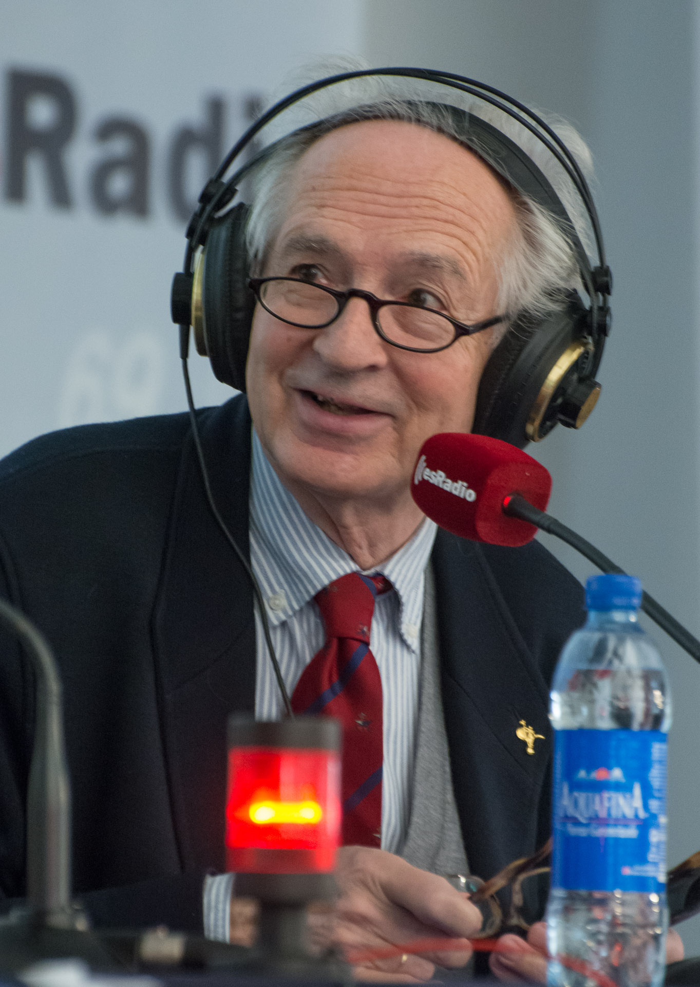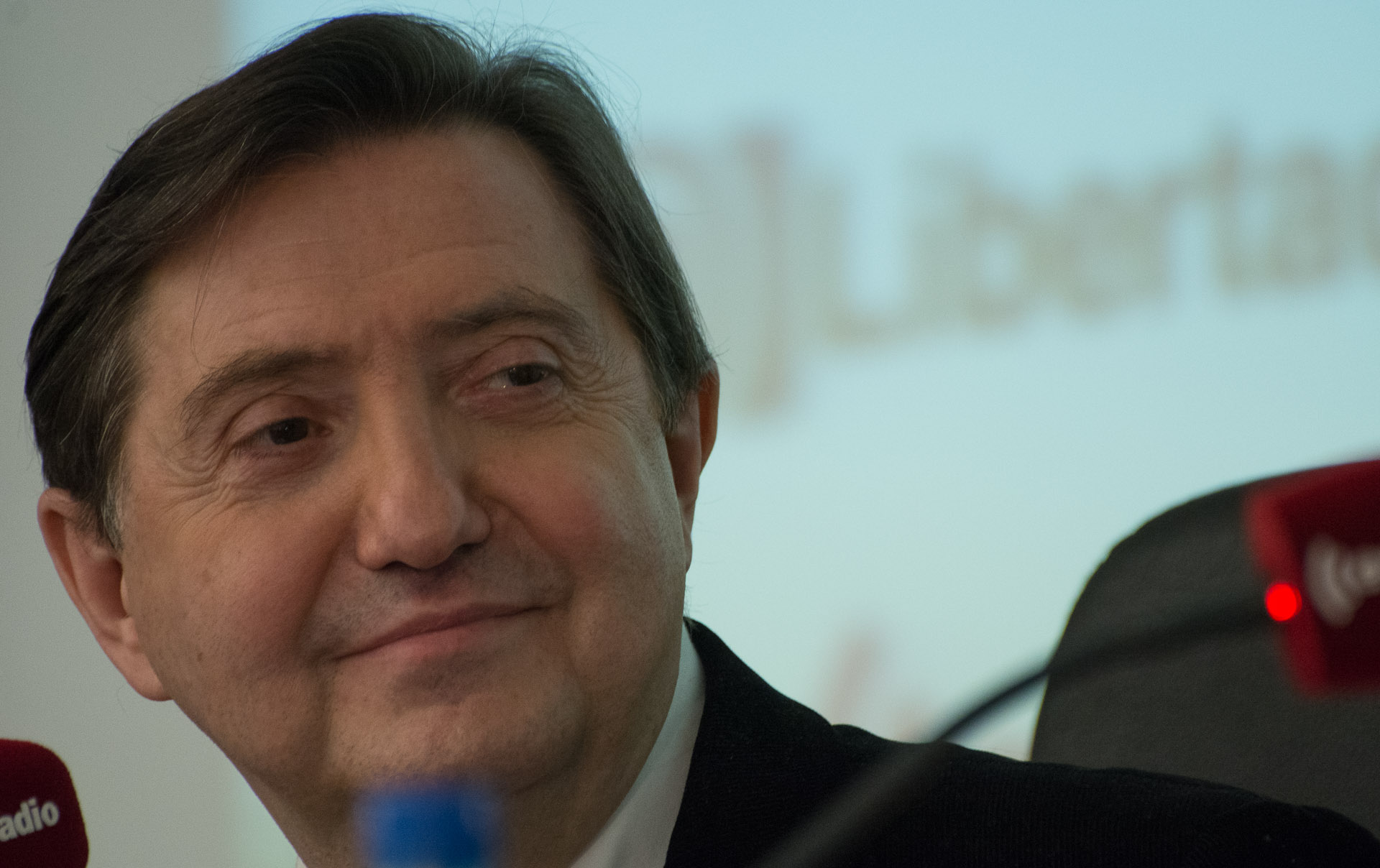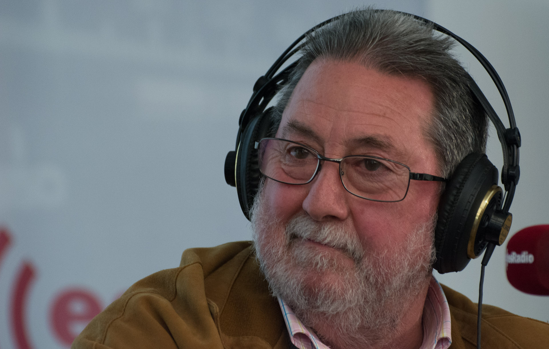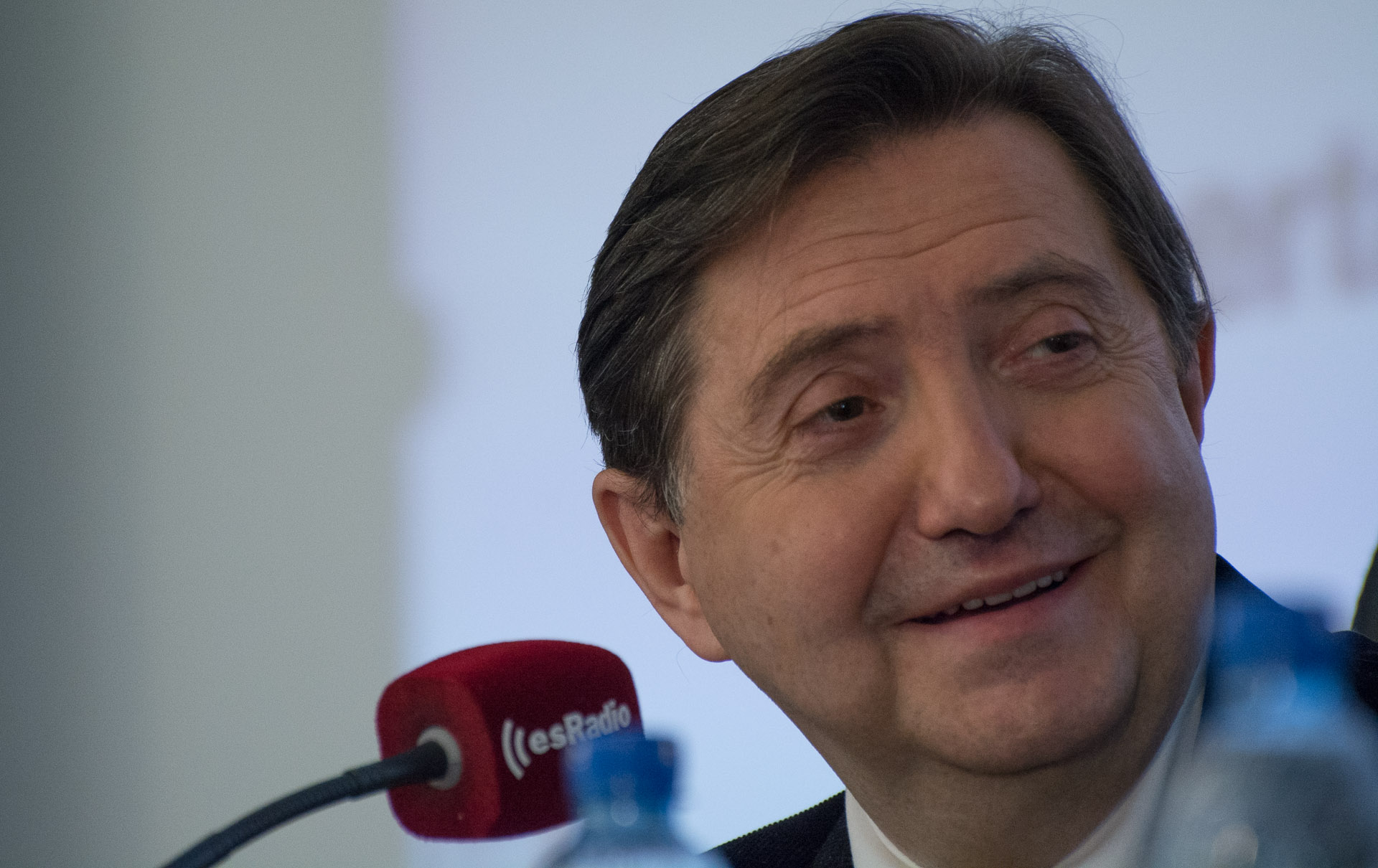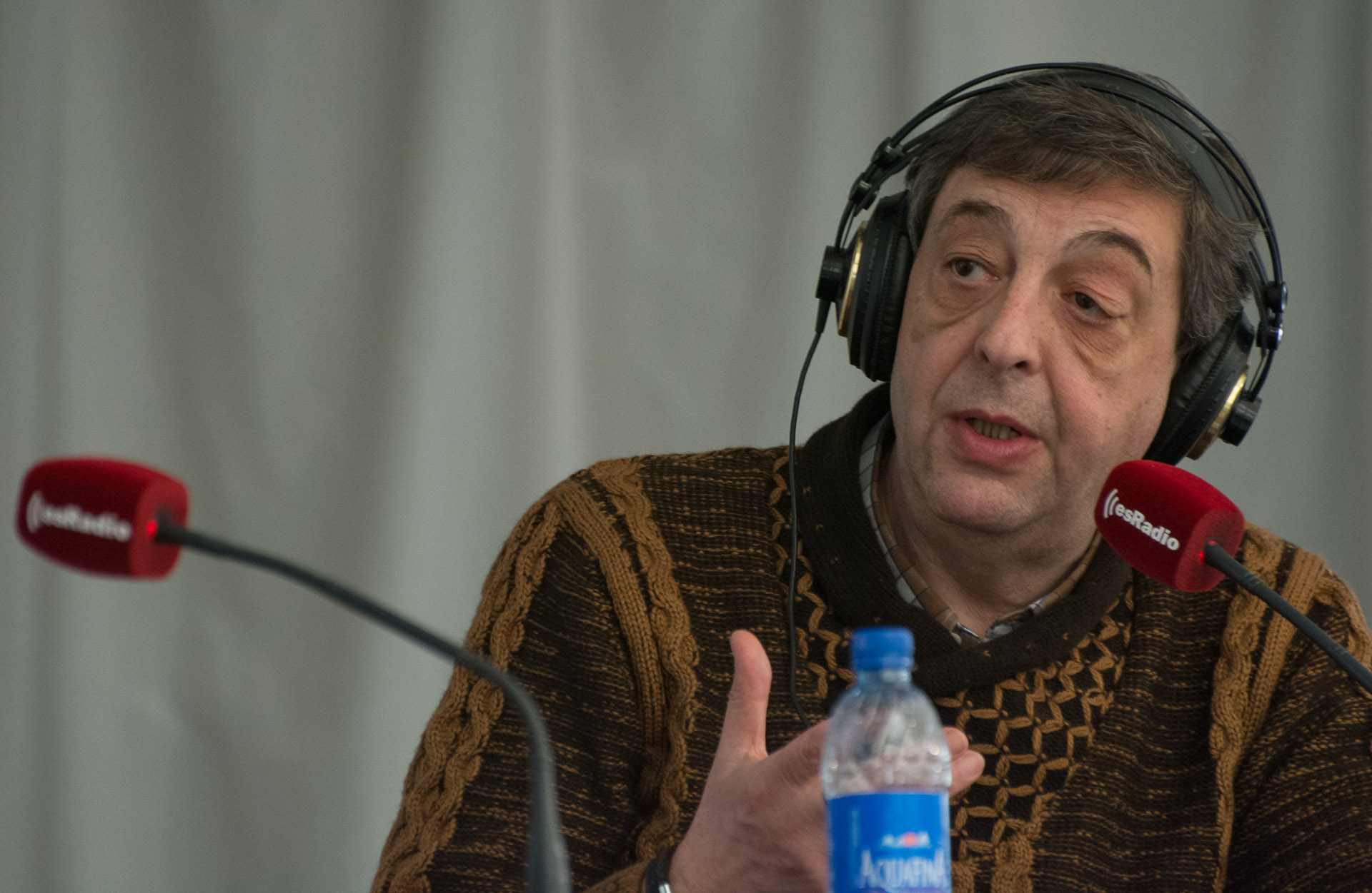 Primer plano de Fedrico Jiménez Losantos, presidente de Libertad Digital y director de Es la Mañana en esRadio, durante la emisión del programa en Sevilla