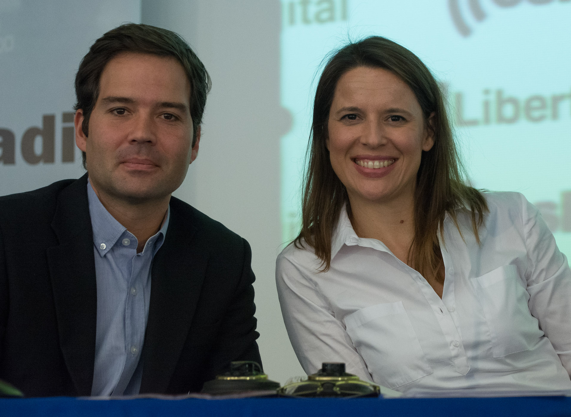 Isabel González, subdirectora de Es la Mañana de Federico, muy sonriente junto a Dieter Brandau, en un momento de la emisión del programa desde Sevilla