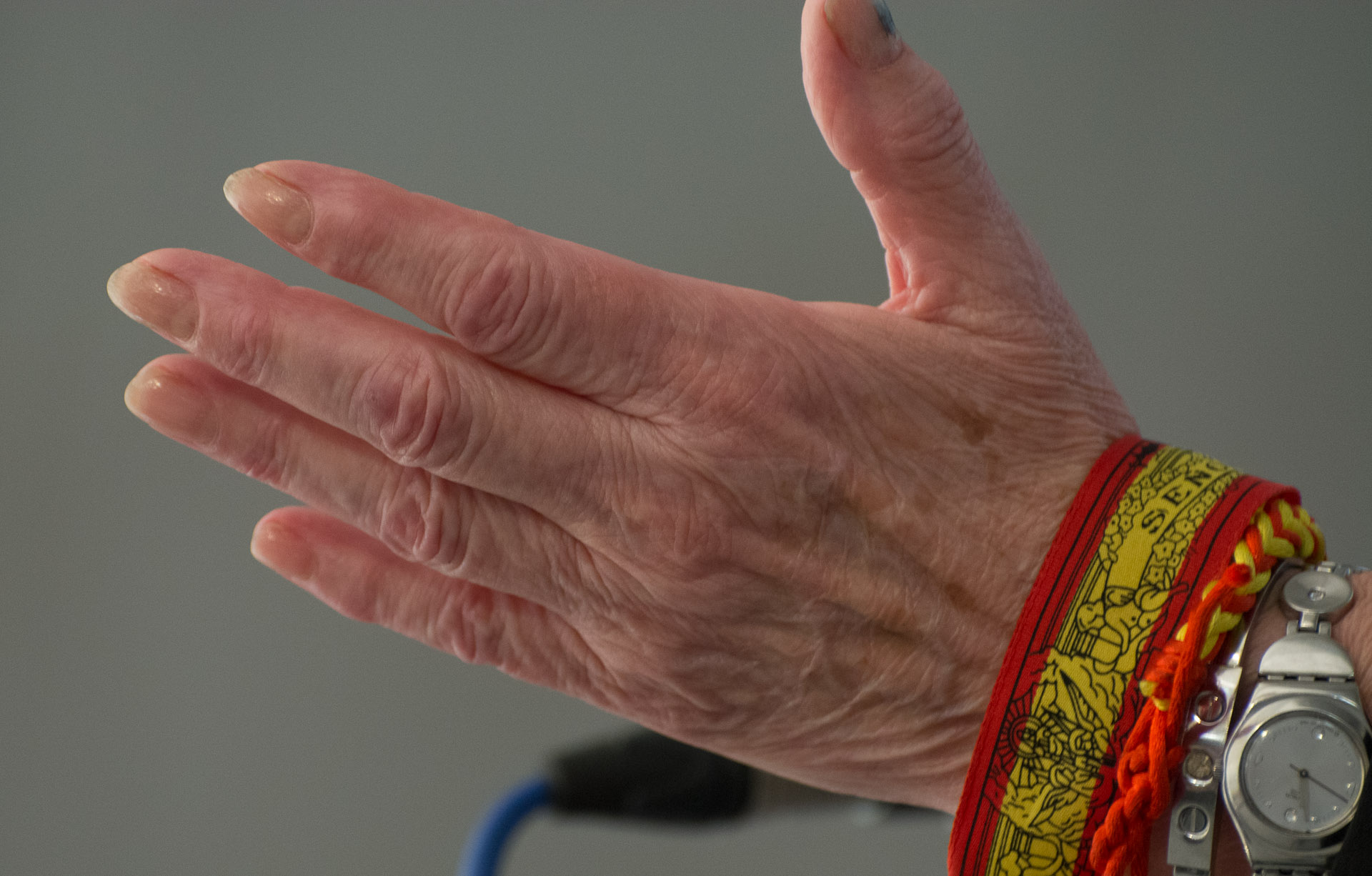 La mano de Carmen Jara durante su intervención en Es la Mañana de Federico, emitida desde el campus universitario EUSA de Sevilla