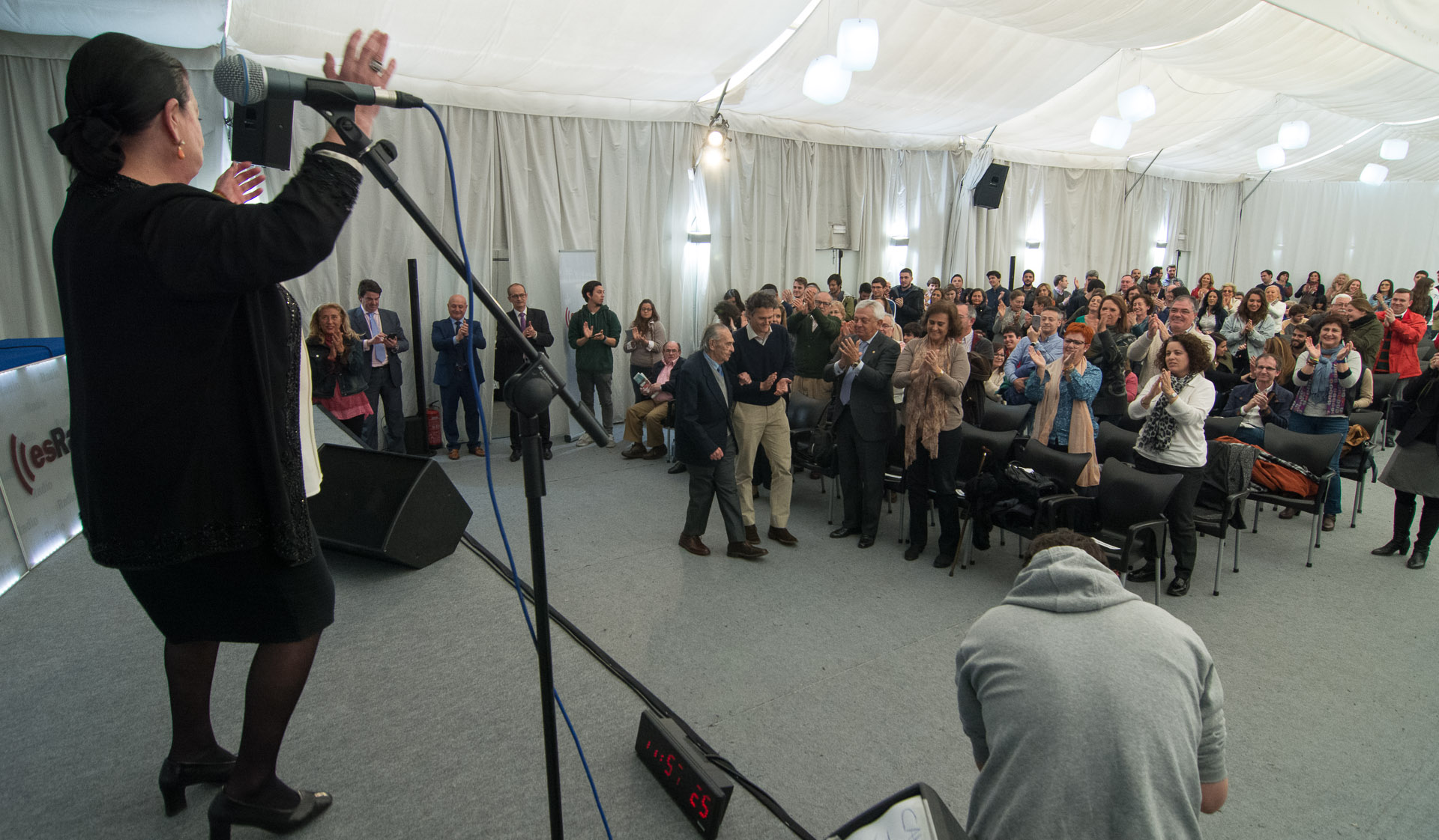 Otro momento de la interpretación de Carmen Jara, colaboradora de Es la Mañana de Federico, en el campus EUSA de Sevilla