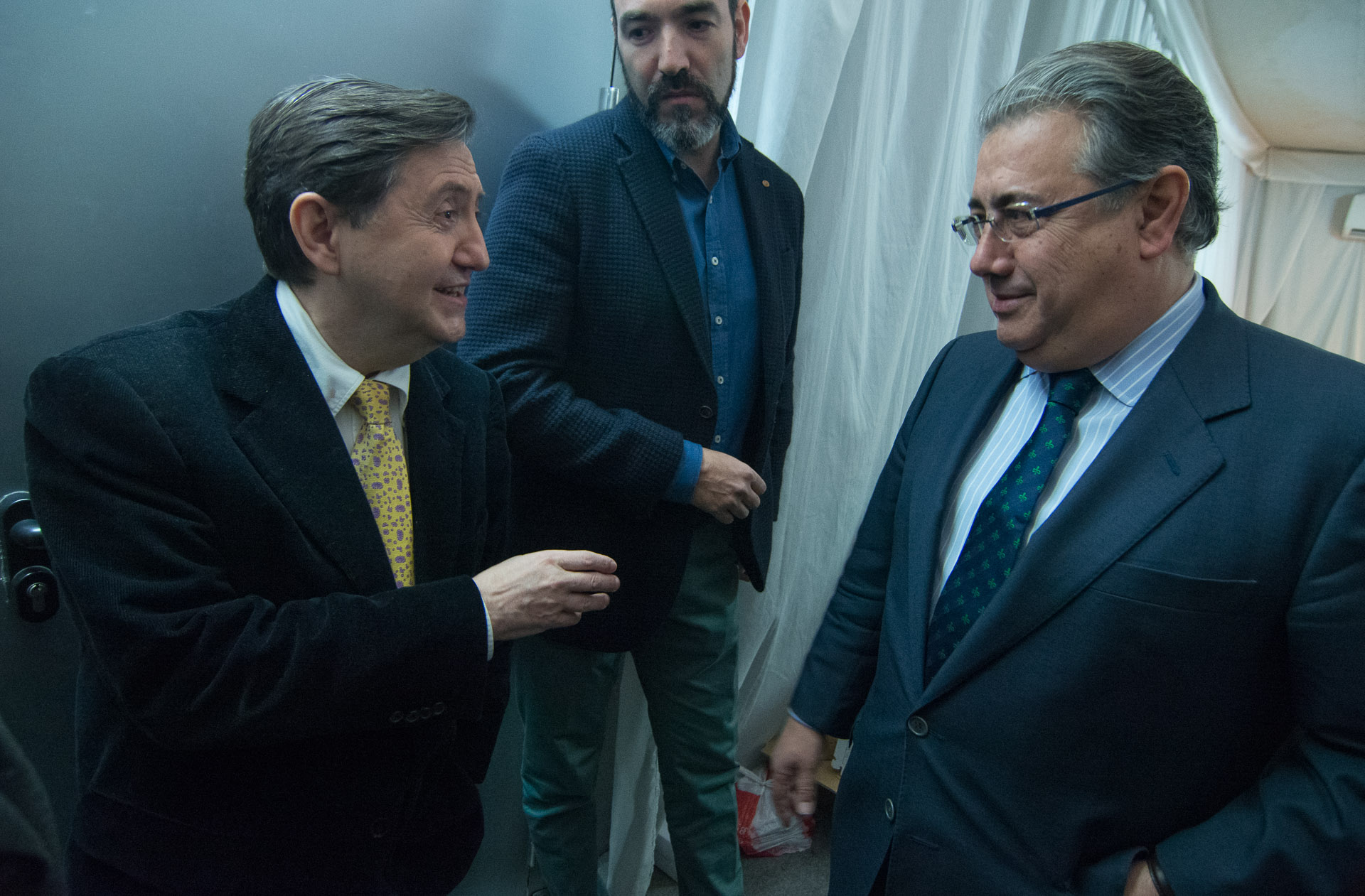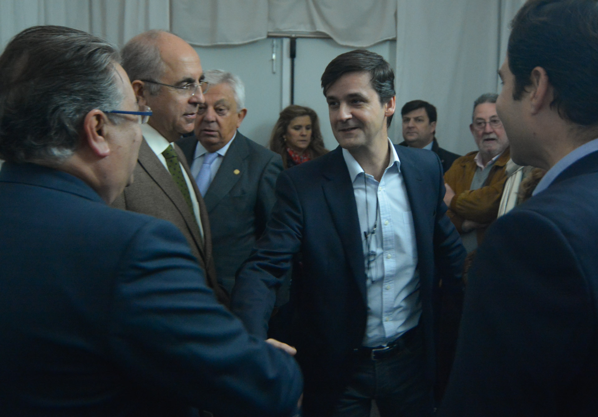 Javier Somalo saluda al alcalde de Sevilla, Jose Ignacio Zoido, en presencia de Dieter Brandau