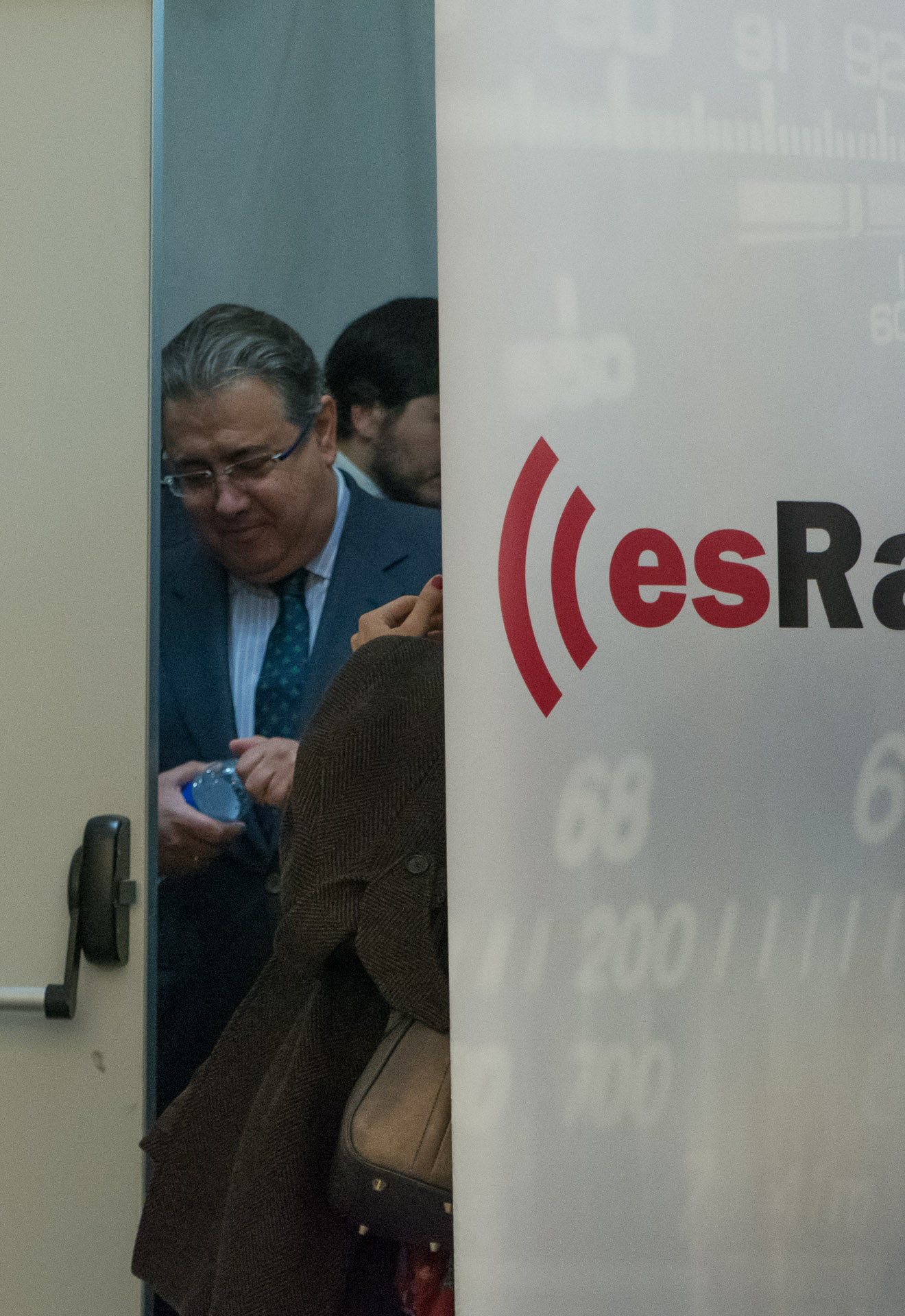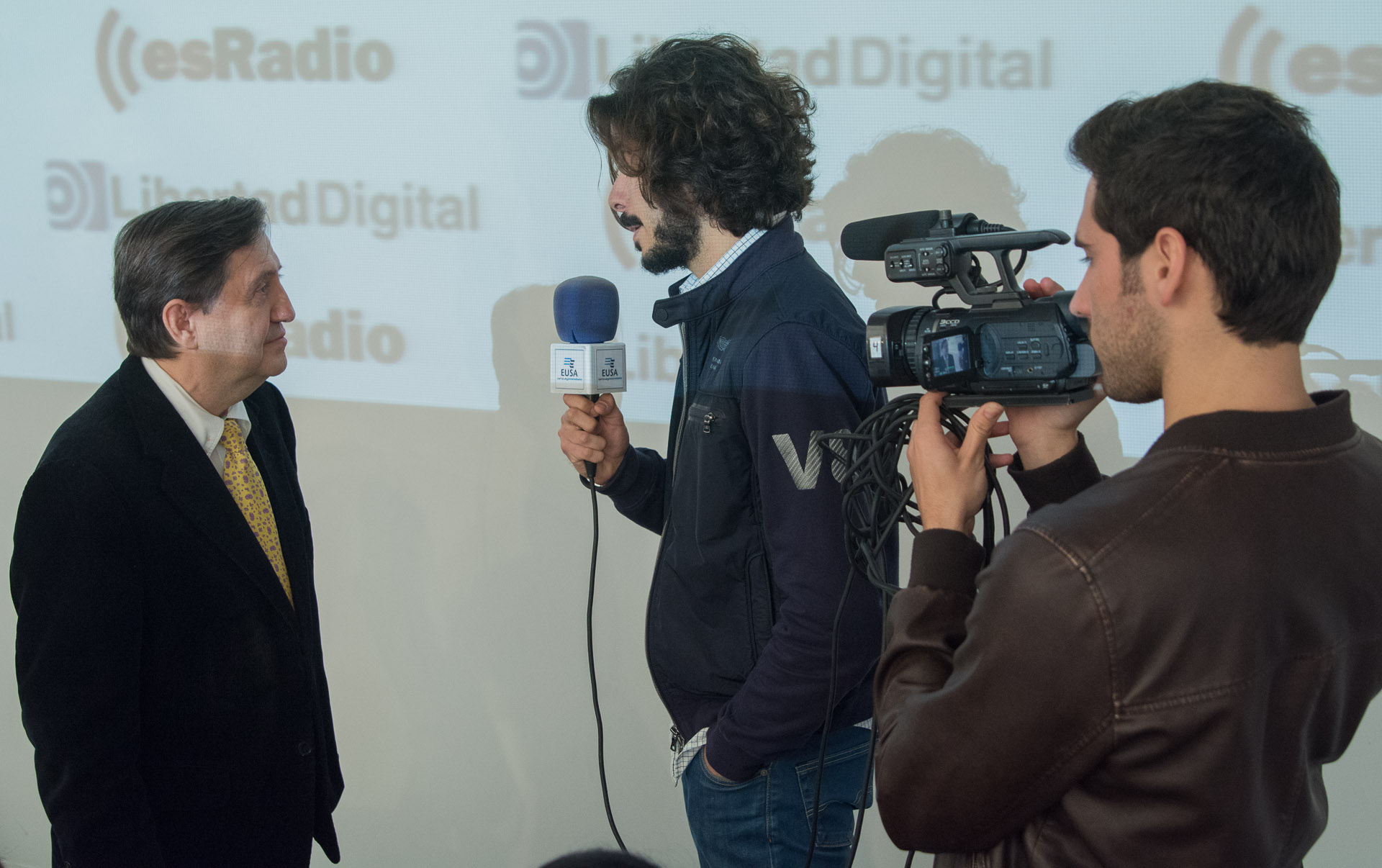 Federico Jiménez Losantos y José Ignacio Zoido hablan durante una pausa en presencia de Miguel Ángel Viedma, director comercial de esRadio