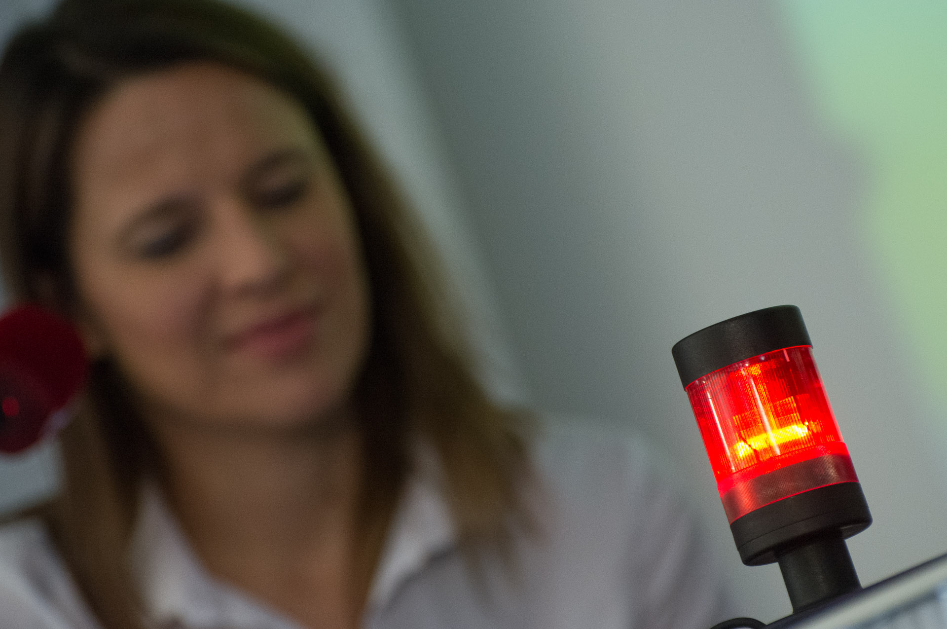 La luz roja que indica que los micrófonos están abiertos, tan sencilla como absolutamente imprescindible en el mundo de la radio