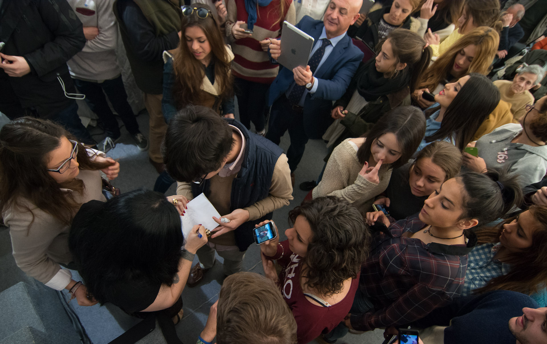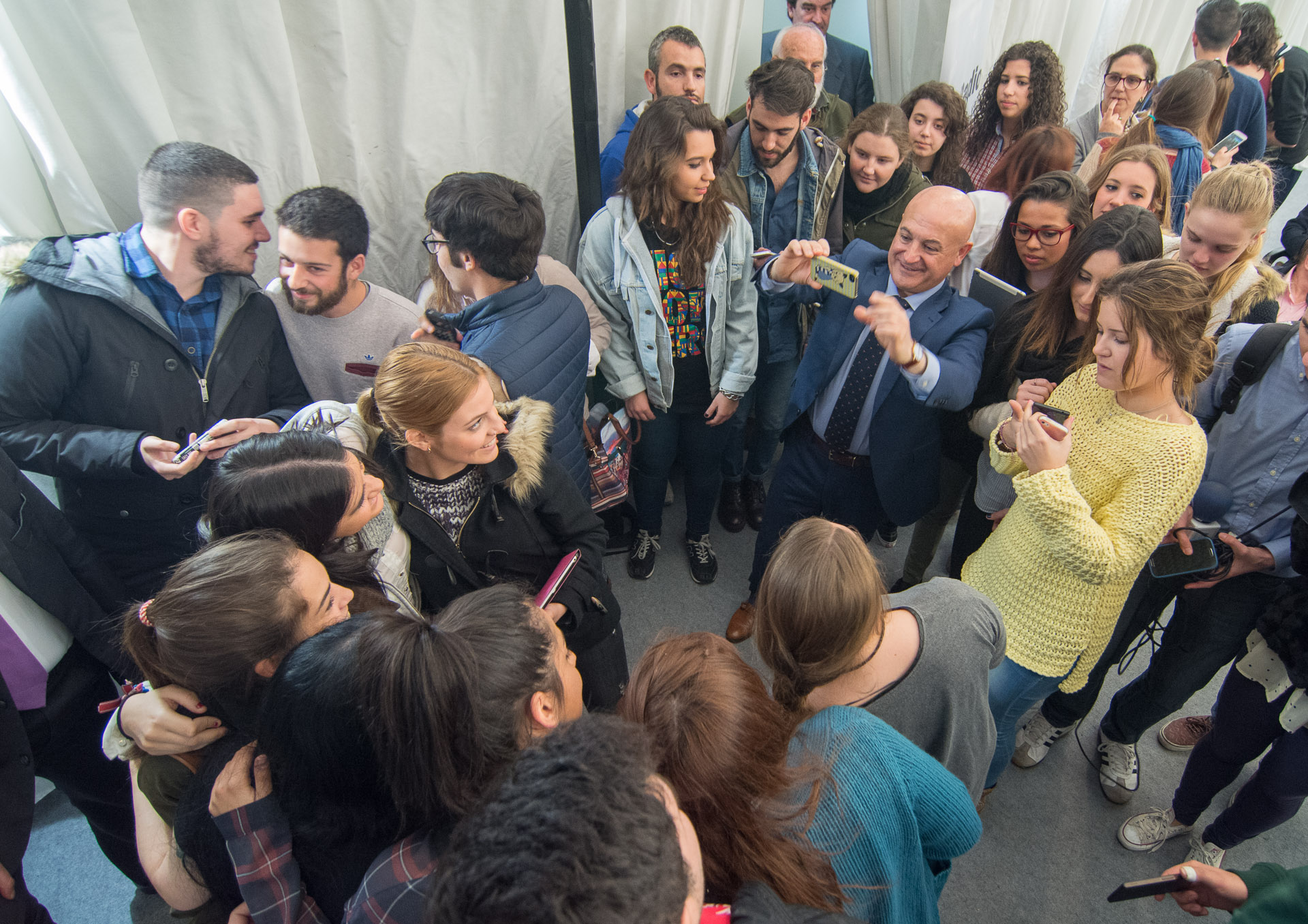 Muchos estudiantes de la EUSA han querido presenciar el programa en directo y han aprovechado las pausas para hacerse selfis con el escenario de fondo