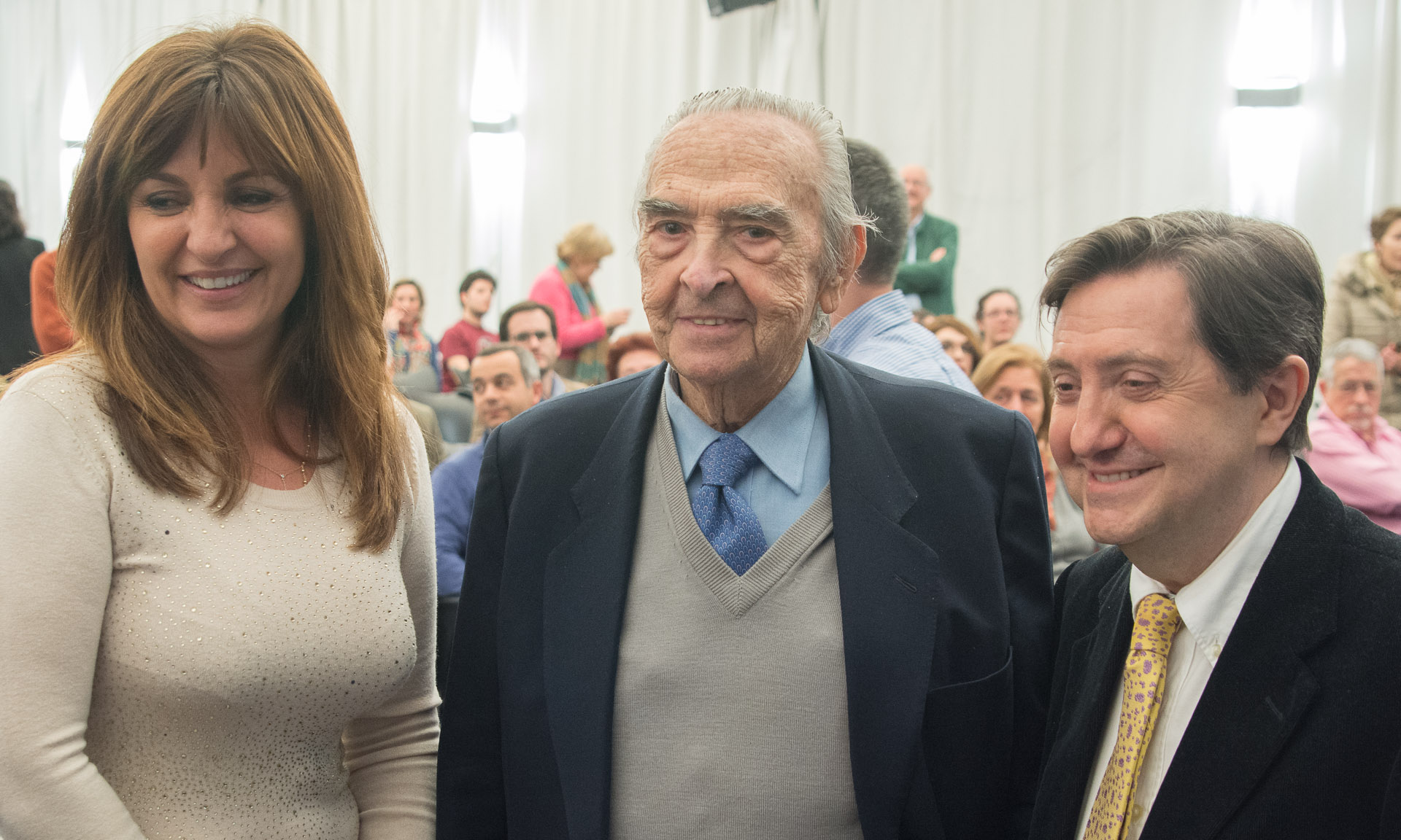 Don Enrique Tello, padre de la esposa de Curro Romero, ha pedido posar con Federico Jiménez Losantos y Beatriz Cortázar