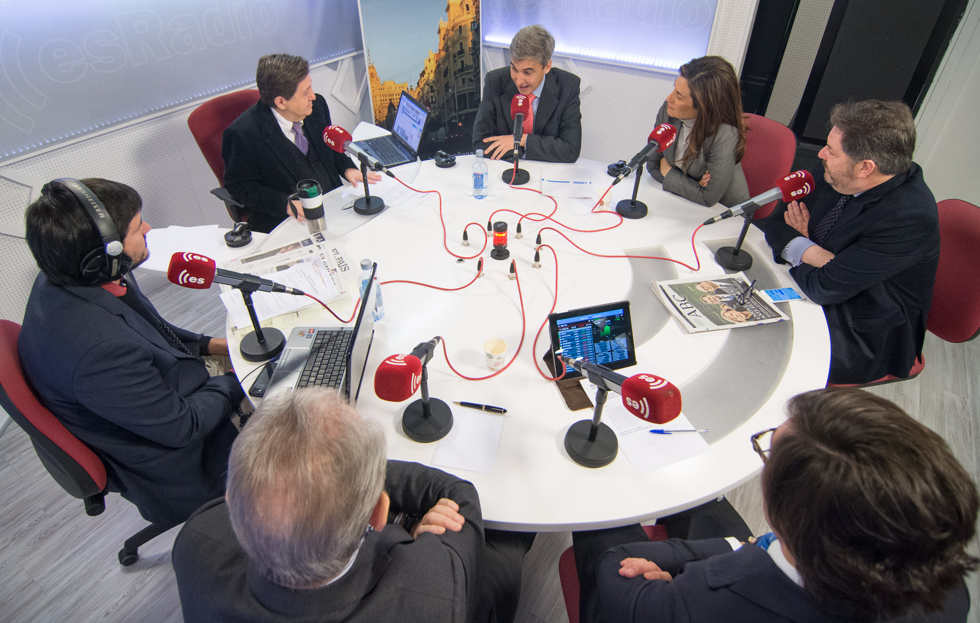 La mesa de tertulia con Federico Jiménez Losantos, David Ortega, Ana Samboal, Bieito Rubido, Luis Fernando Quintero, José Raga y Miguel Ángel Pérez