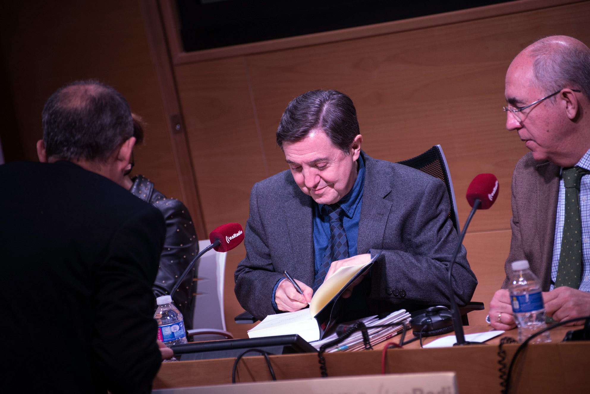 Federico, junto a Ayanta, firmando un ejemplar de \'Memoria del Comunismo\'.