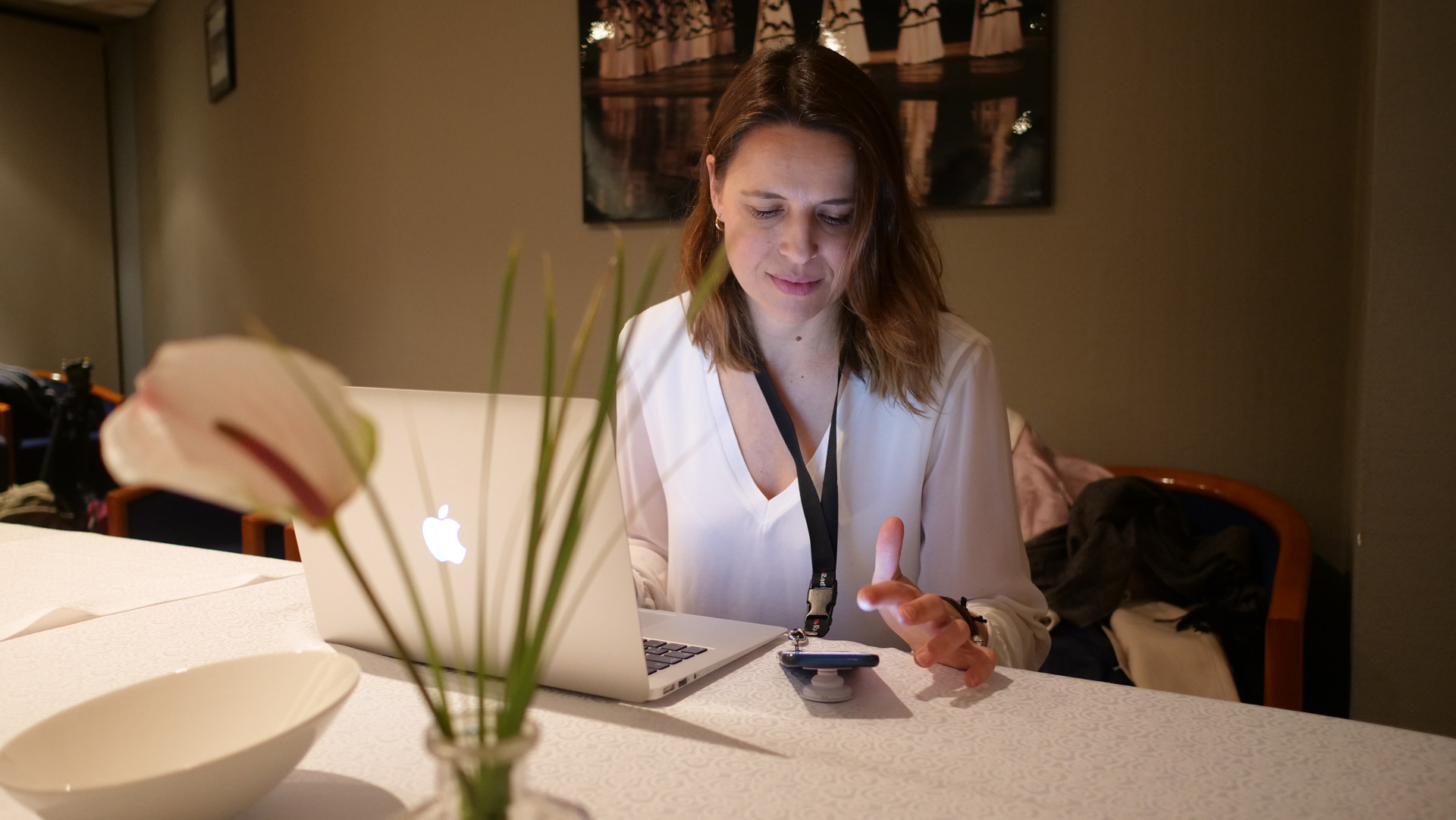Isabel González, preparando su sección, momentos antes de entrar en directo.