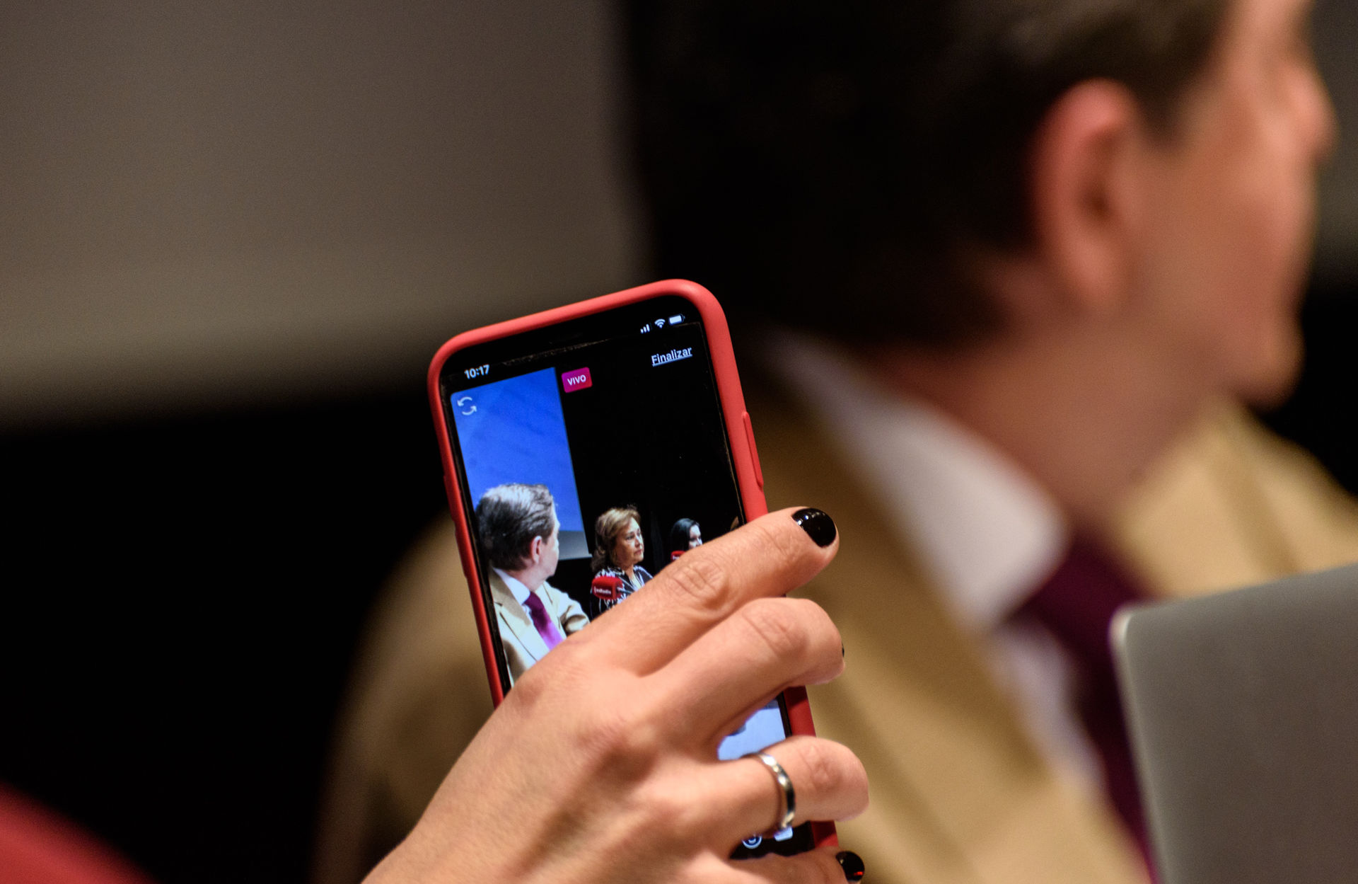 Isabel González retransmitiendo en directo por redes sociales parte del programa.
