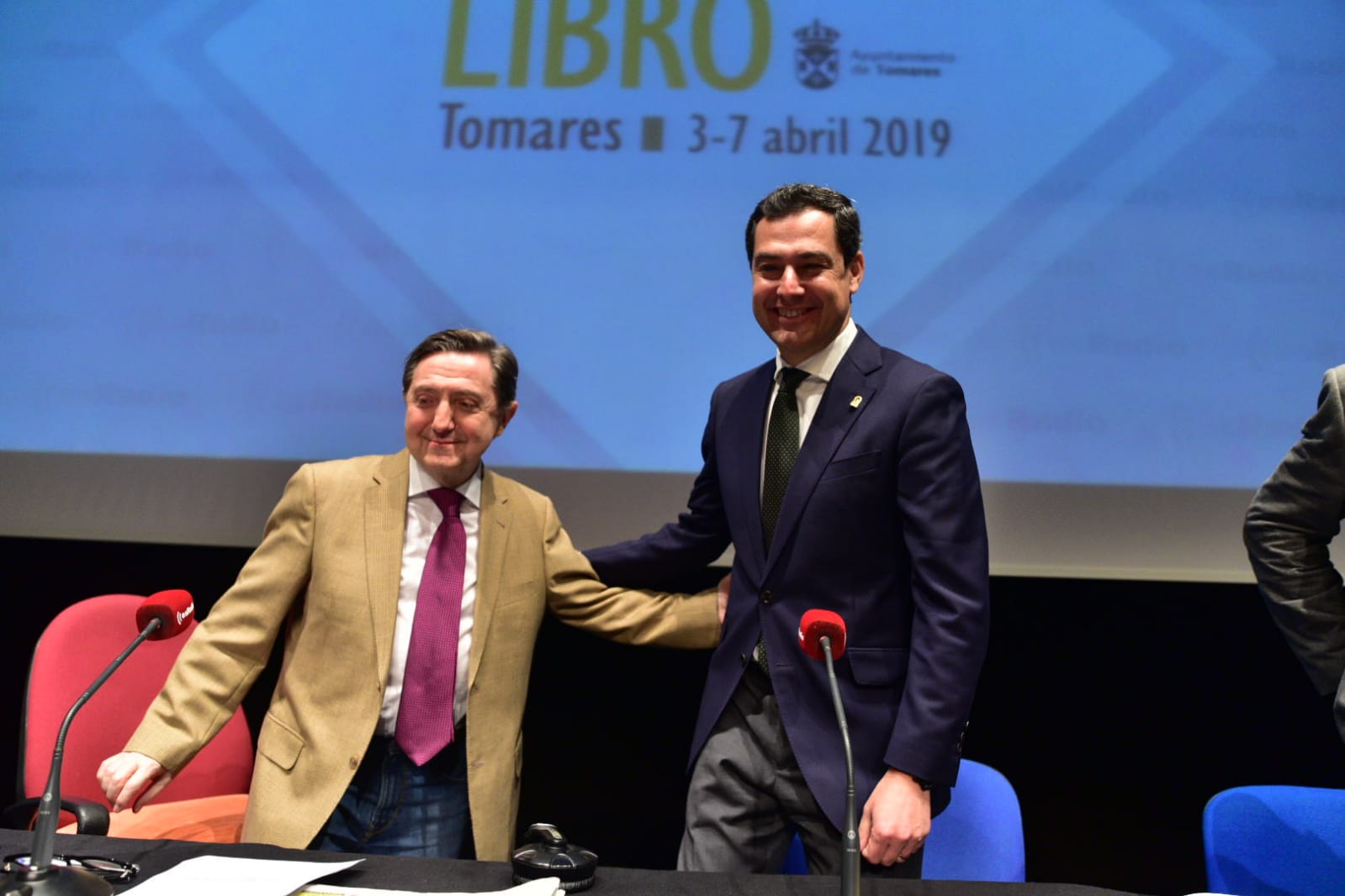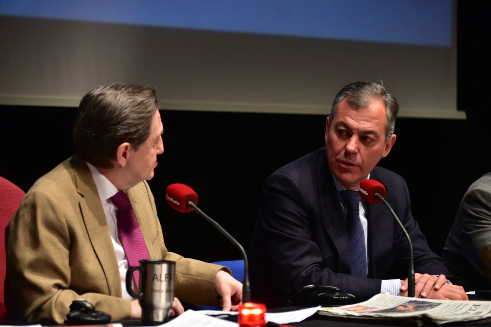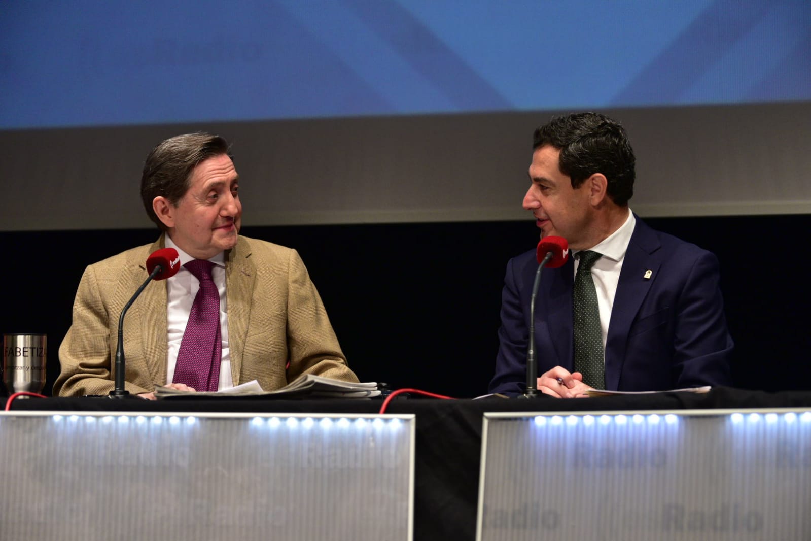 Federico Jiménez Losantos saluda al presidente de la Junta de Andalucía, Juanma Moreno Bonilla