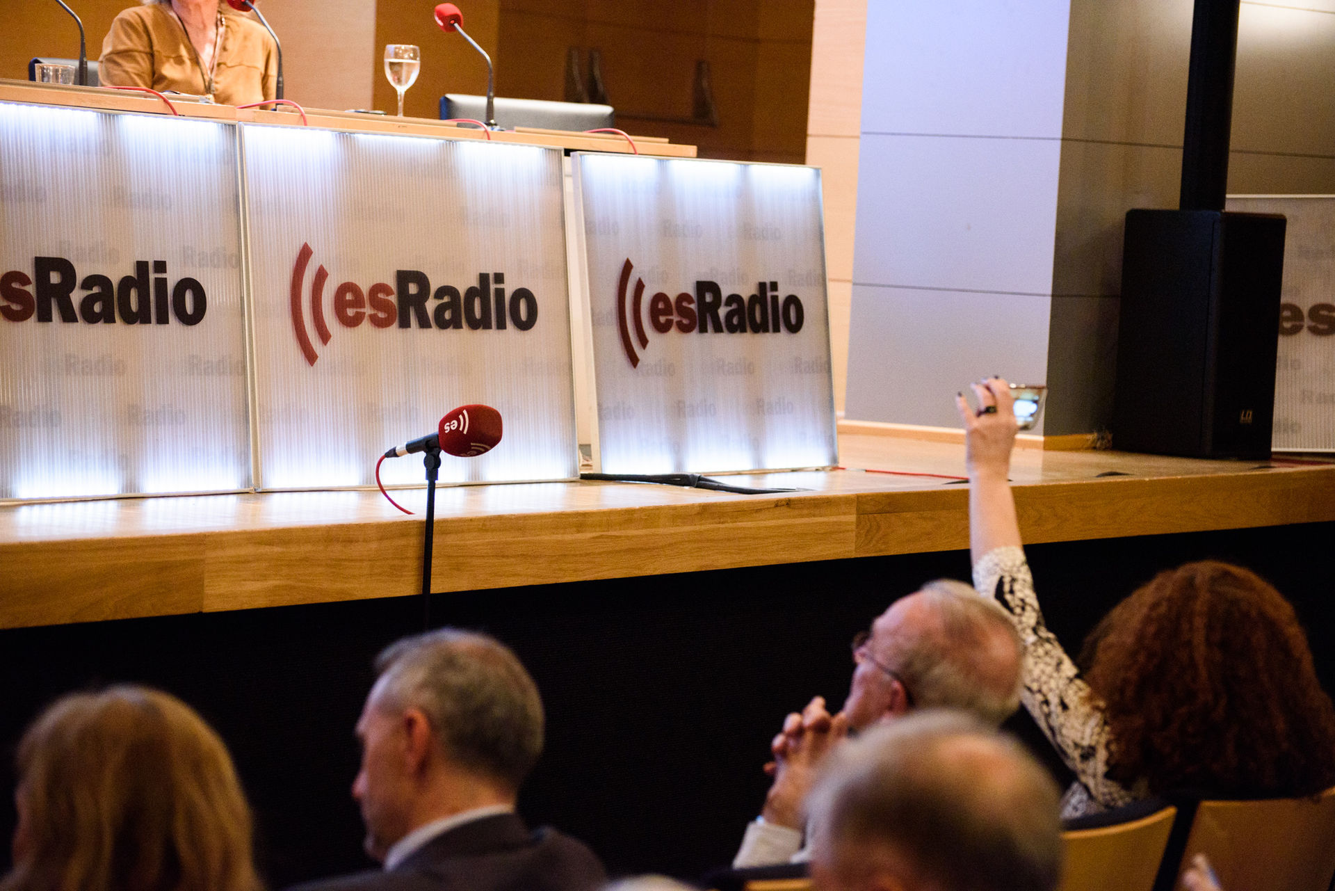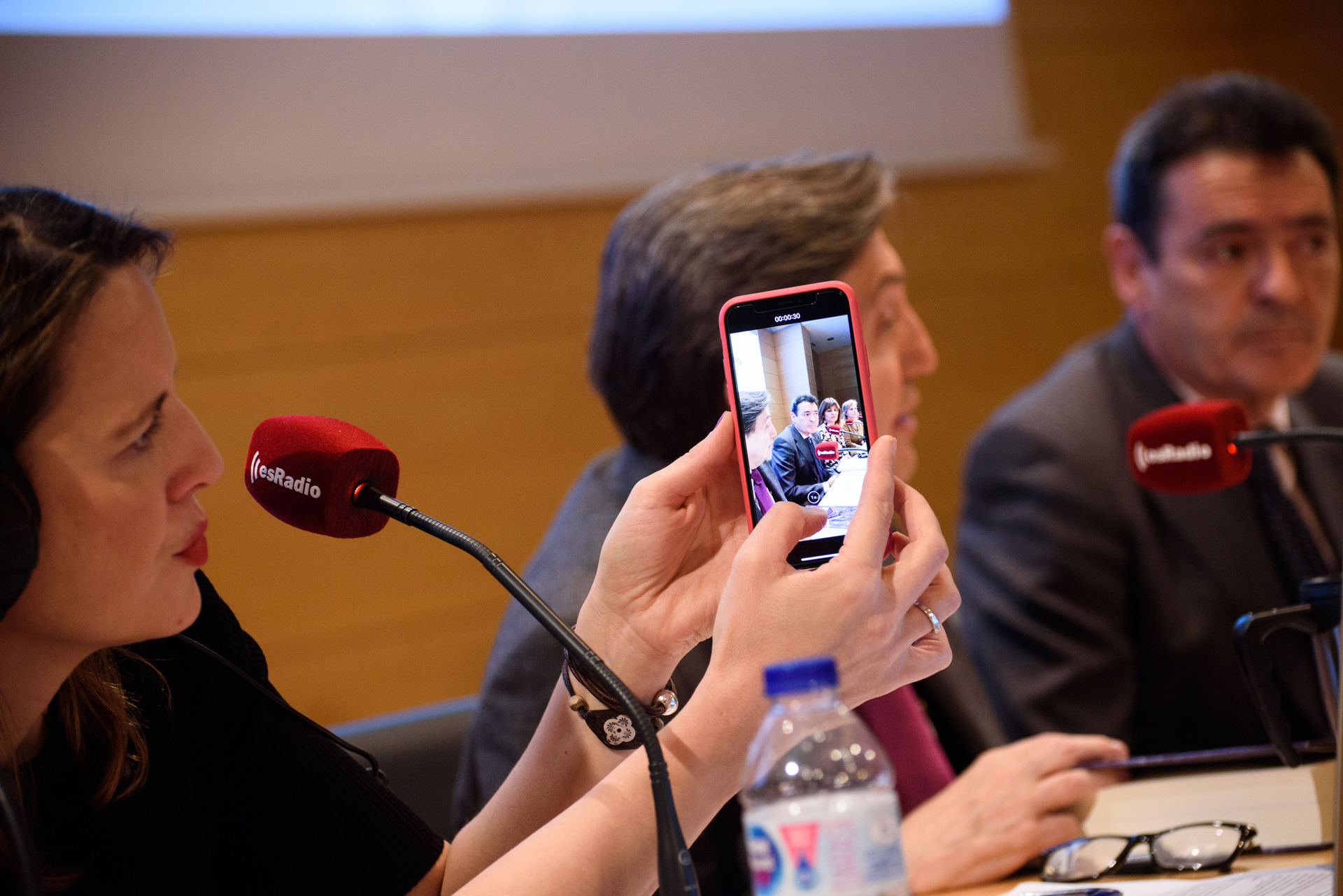 María José Catalá, candidata del PP a la alcaldía de Valencia, durante su entrevista con Federico Jiménez Losantos, junto a Rosana Laviada y Luis Herrero.