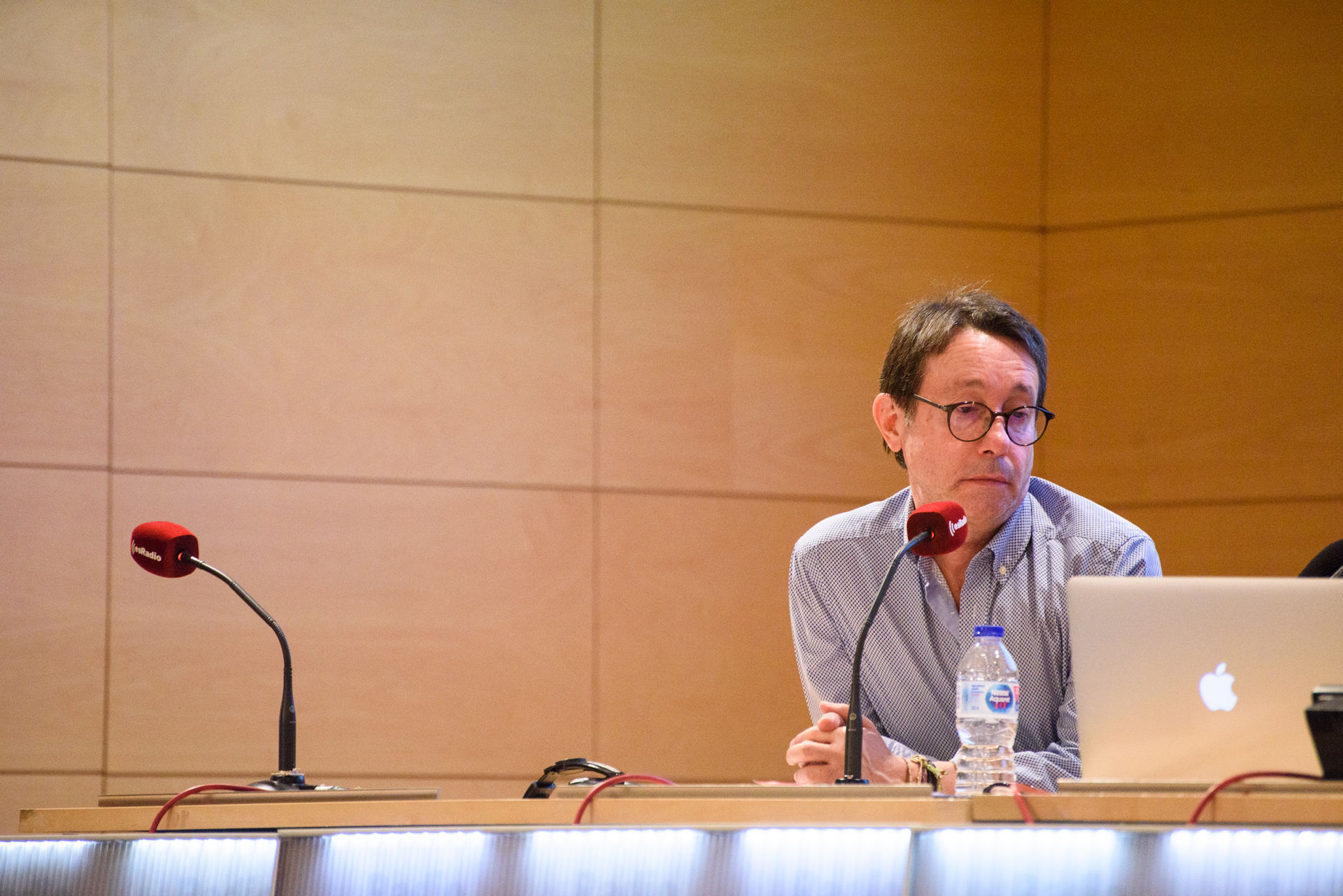 Carlos Pérez Gimeno revisa el portátil durante la Crónica Rosa.