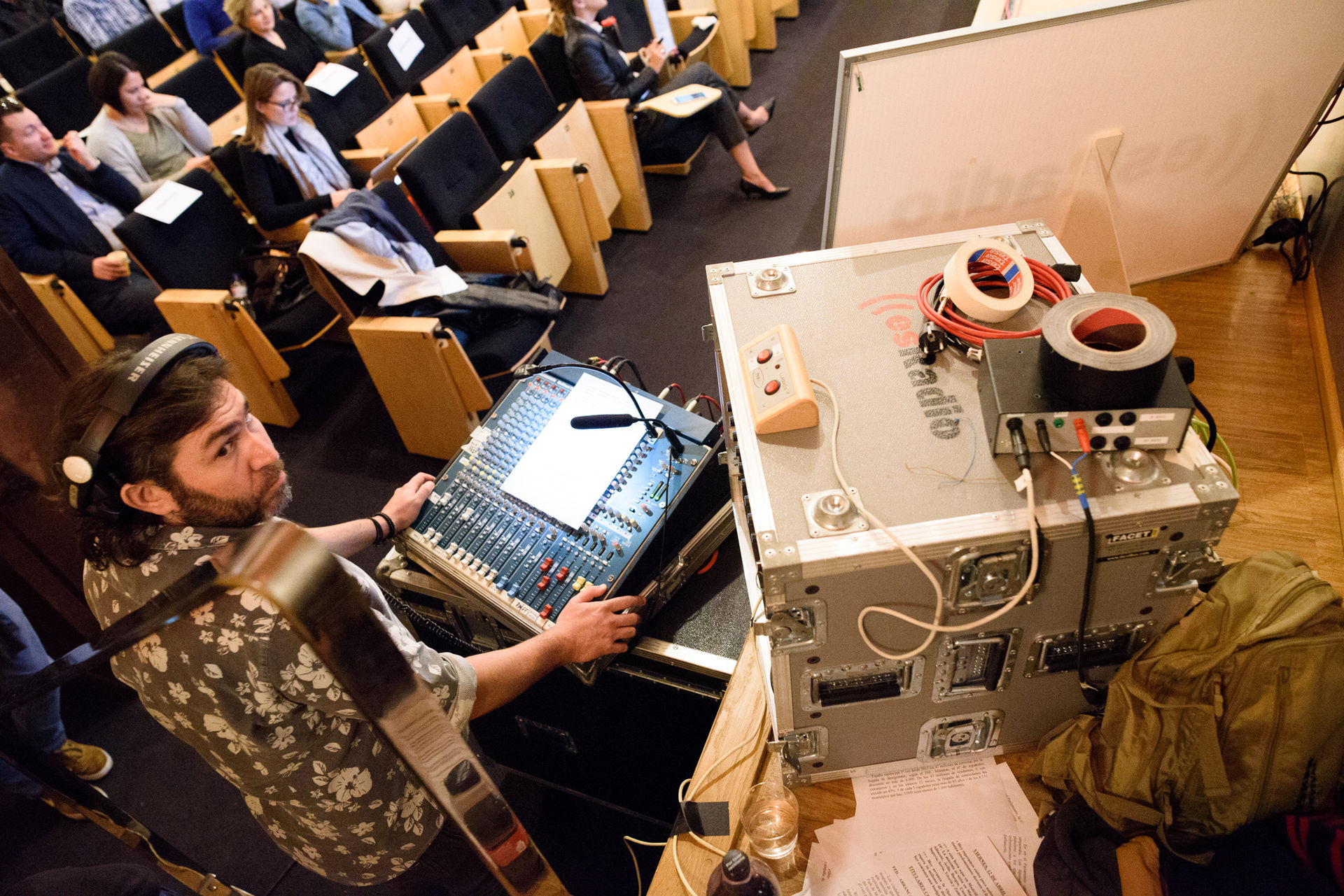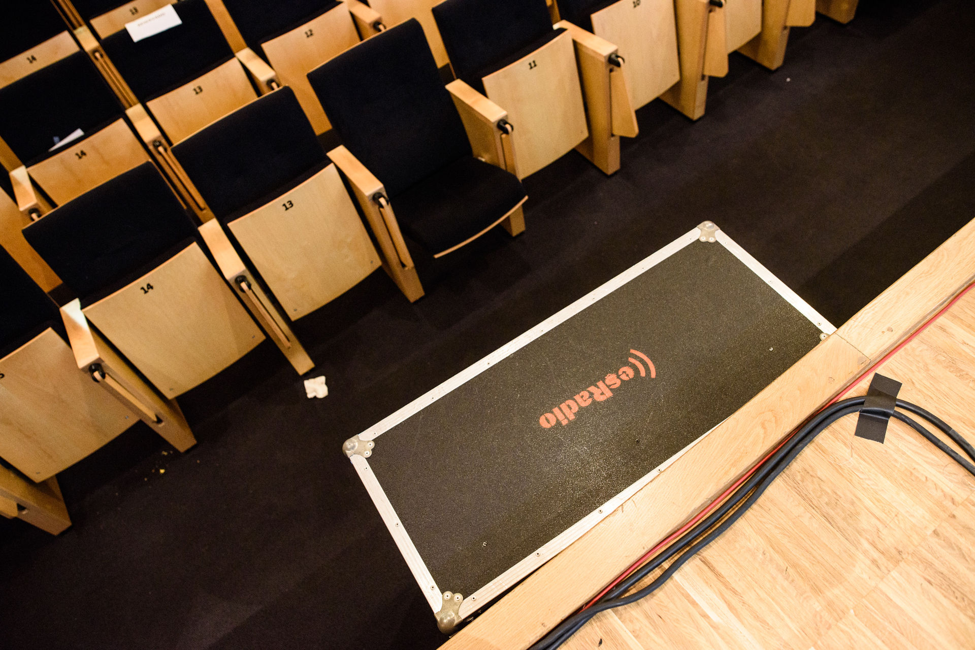 Una de las maletas del equipo técnico momentos después de terminar el programa, ya con las butacas vacías.
