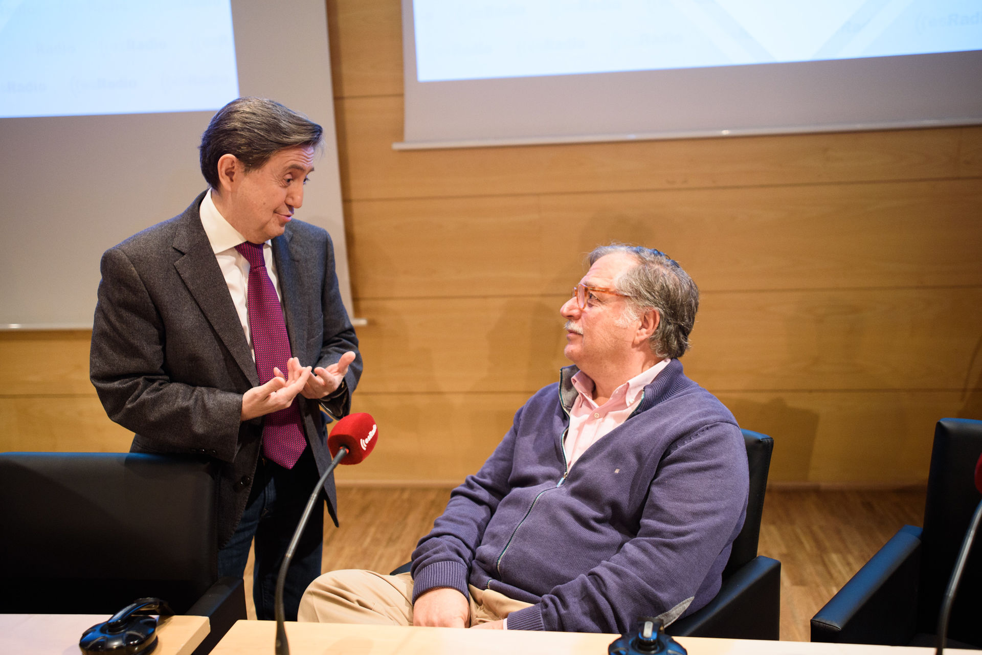 Federico y Luis Herrero conversan unos segundos durante una de las pausas del programa.