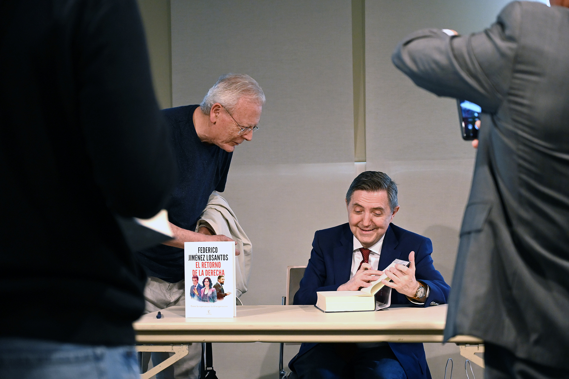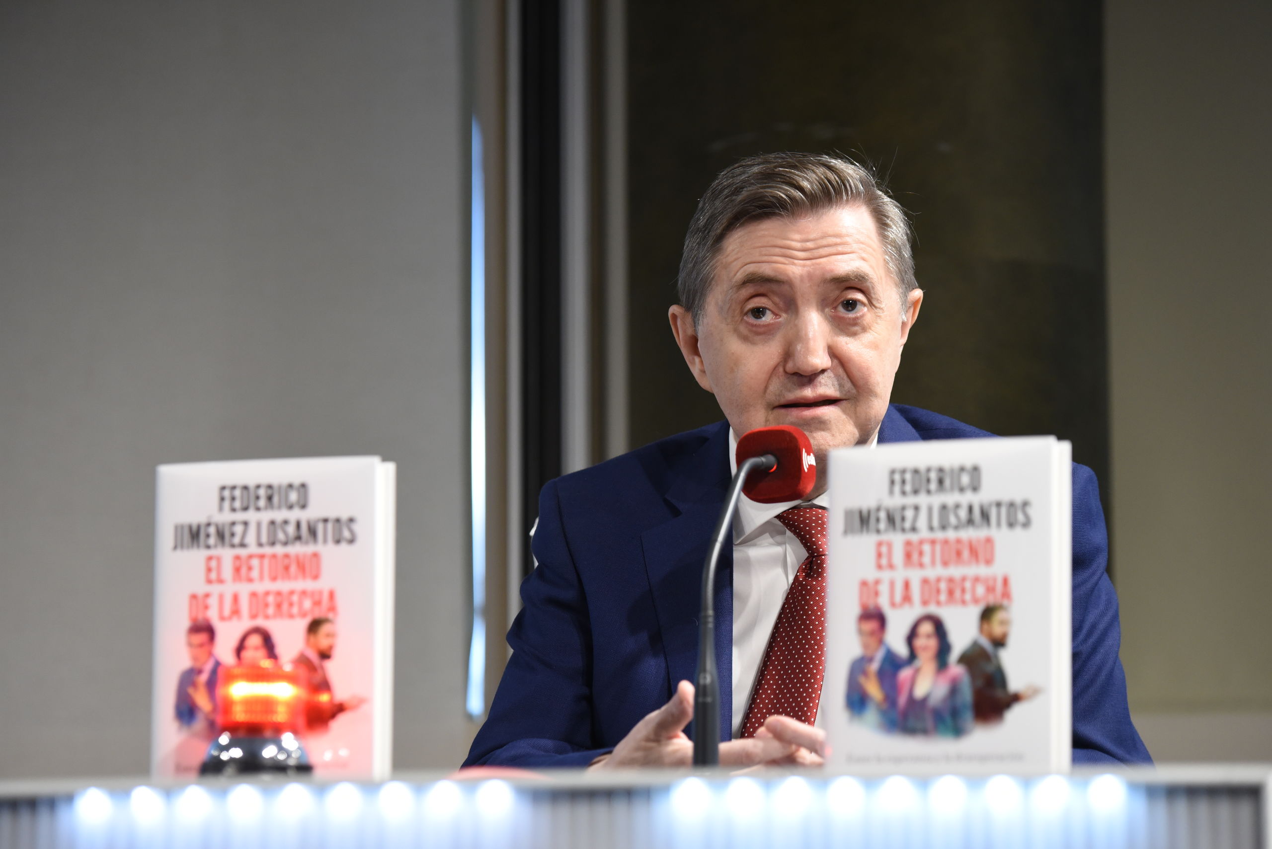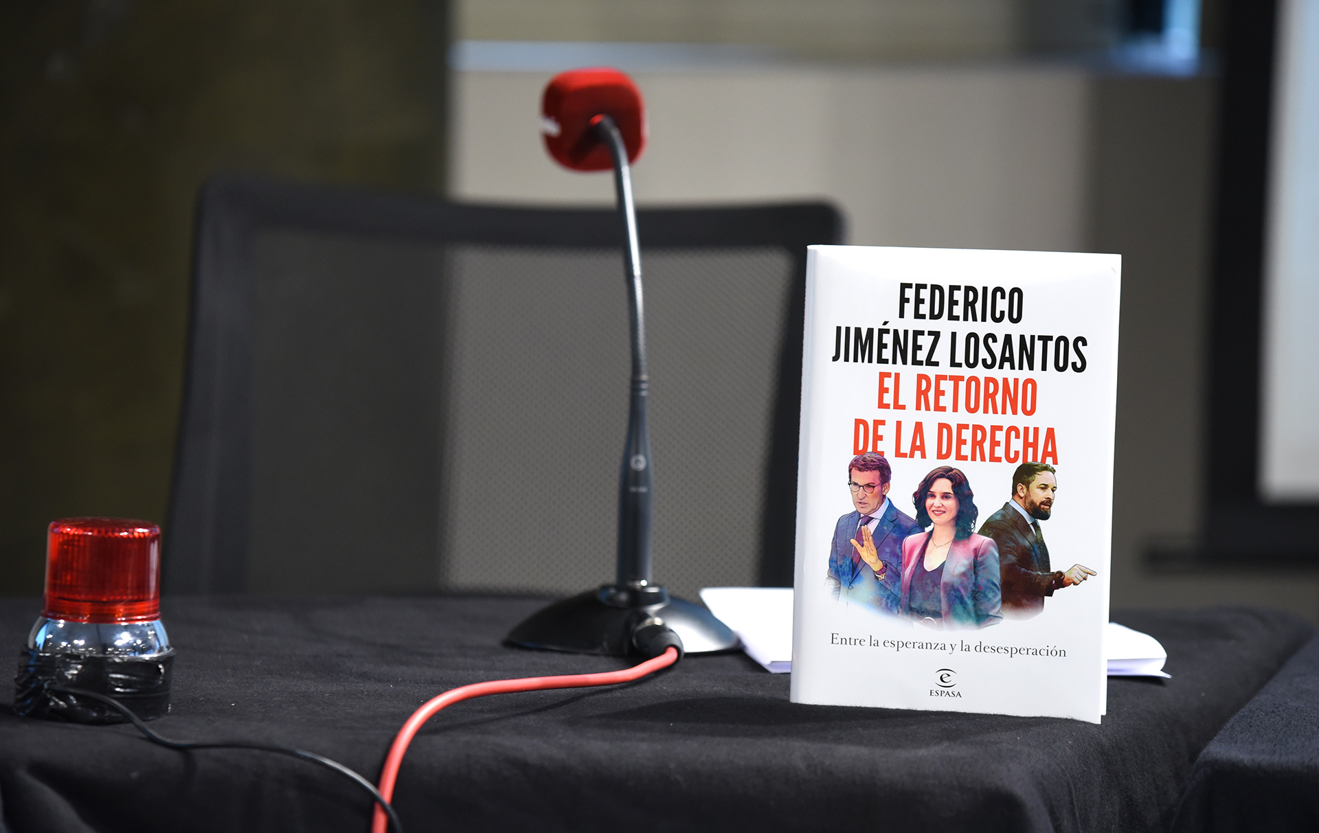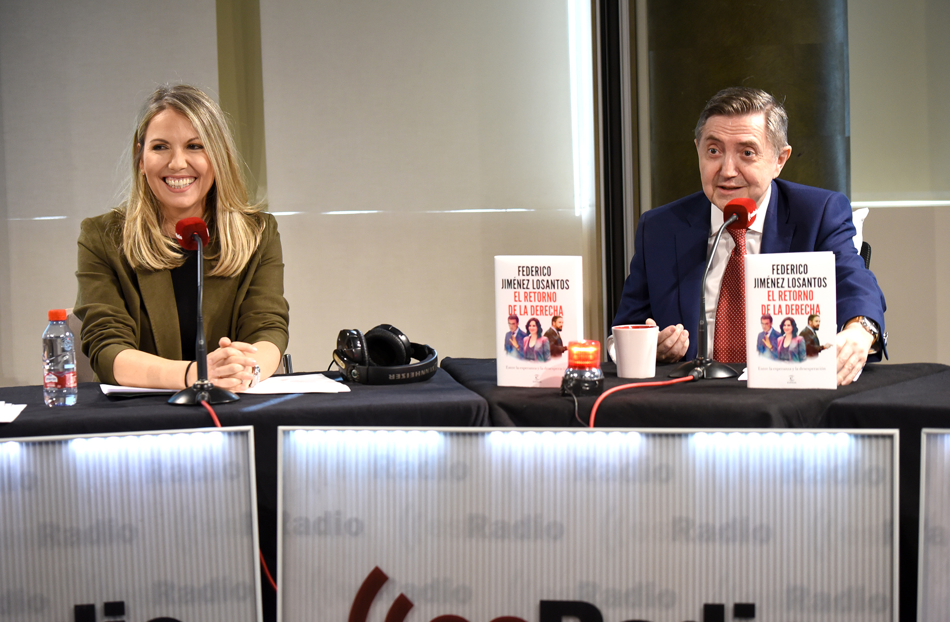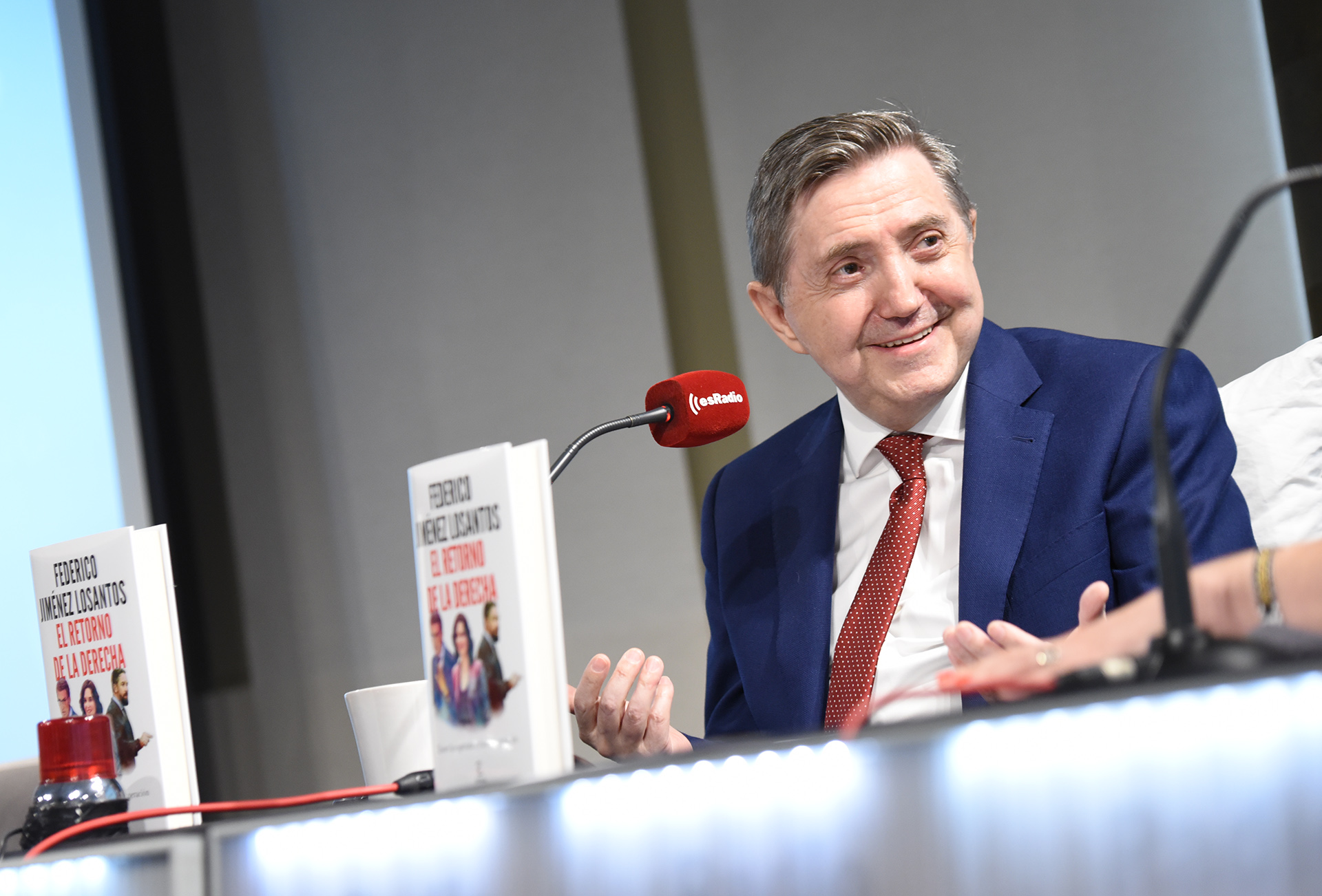 Programa especial de Es la Mañana de Federico desde Murcia. Primer plano de Federico Jiménez Losantos con dos ejemplares de su último libro, El retorno de la derecha.