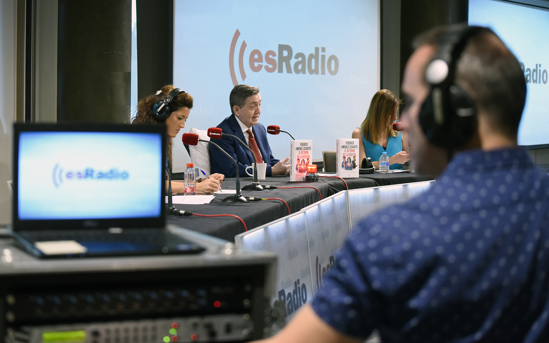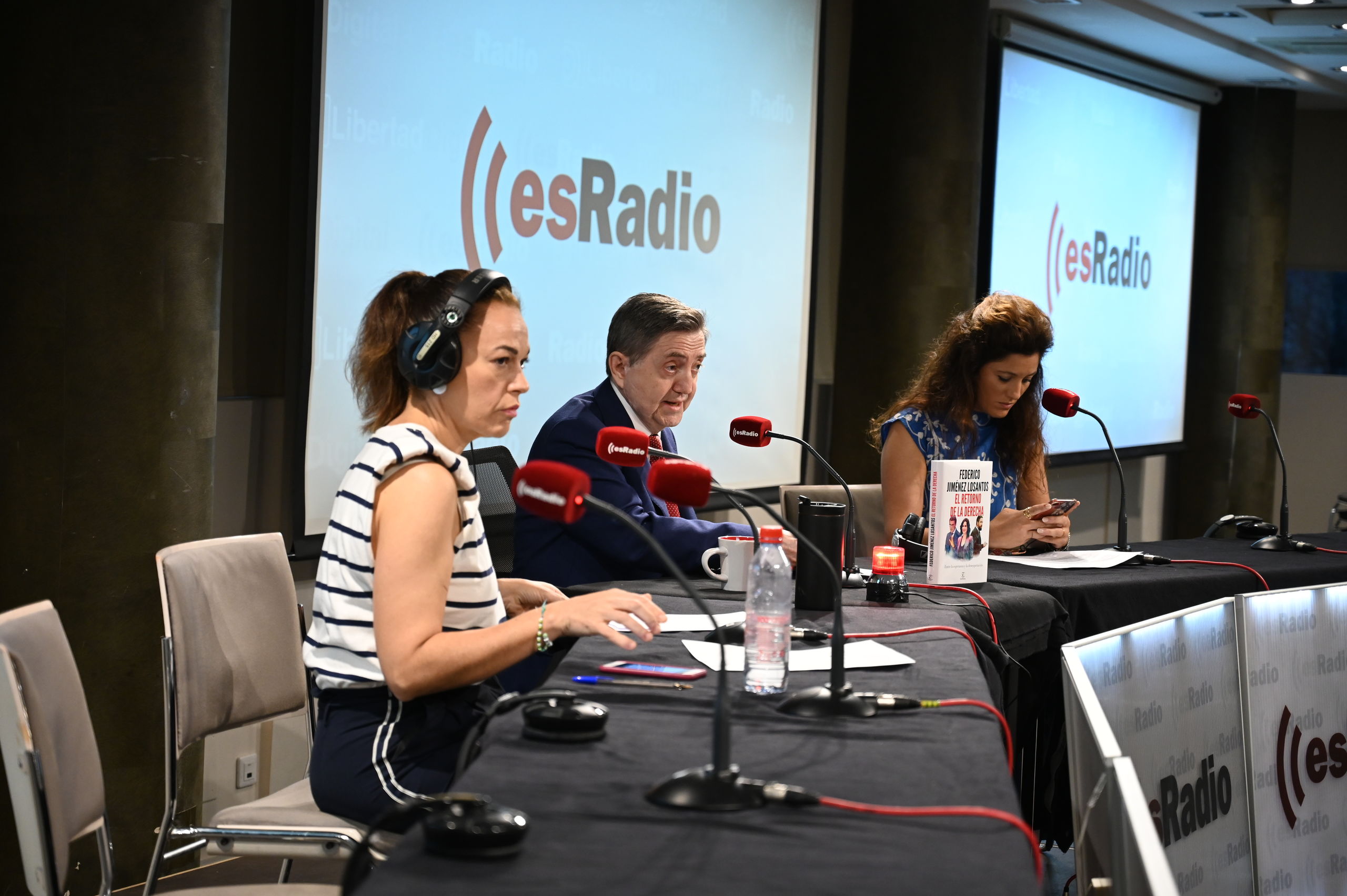 Jiménez Losantos en un momento de la emisión del programa especial de Es la Mañana de Federico desde Murcia, con Sara Sanz y Silvia Riveiro.