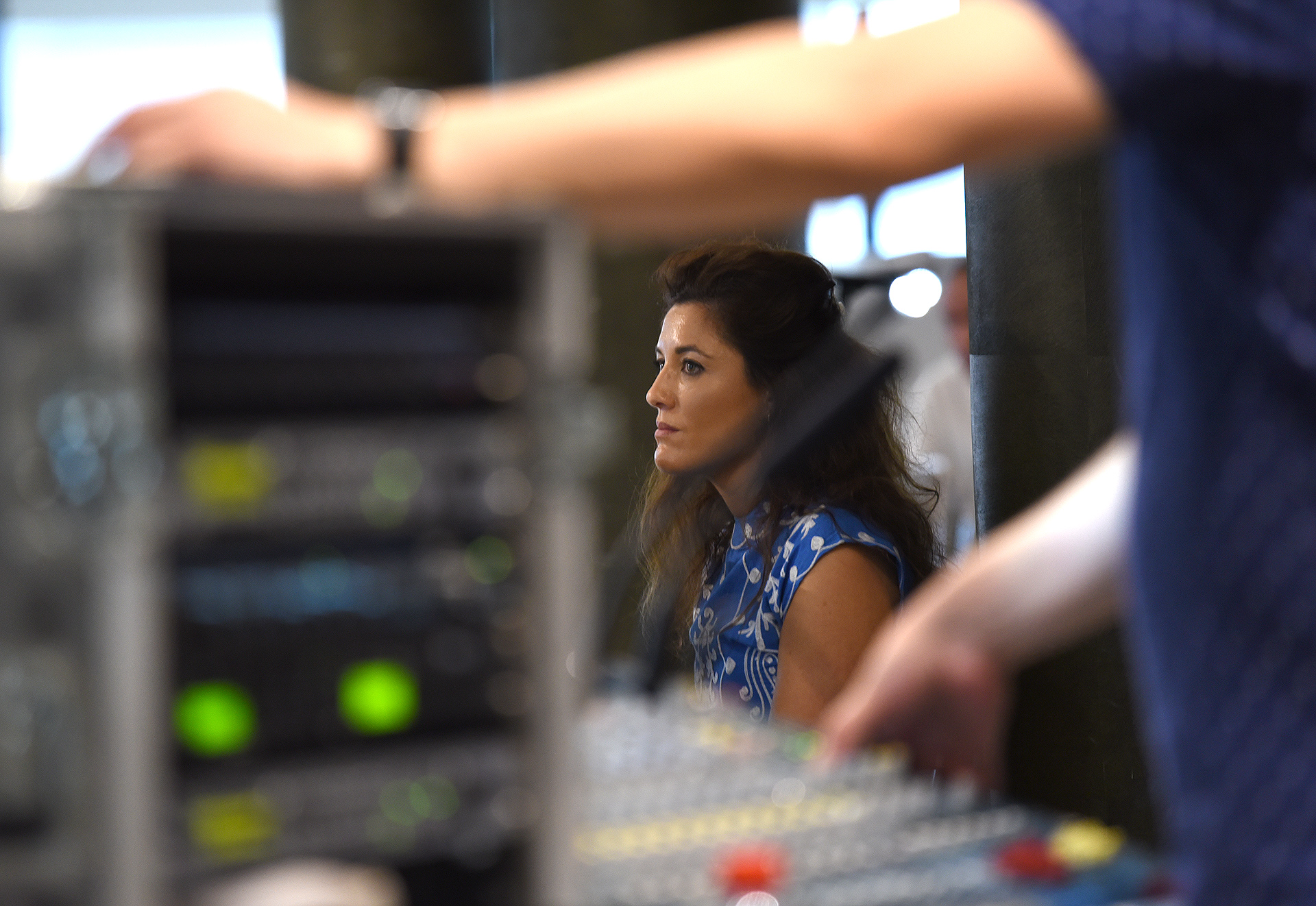 Sara Sanz muy atenta detrás de las cámaras para que todo fuera siguiendo el guión del programa.