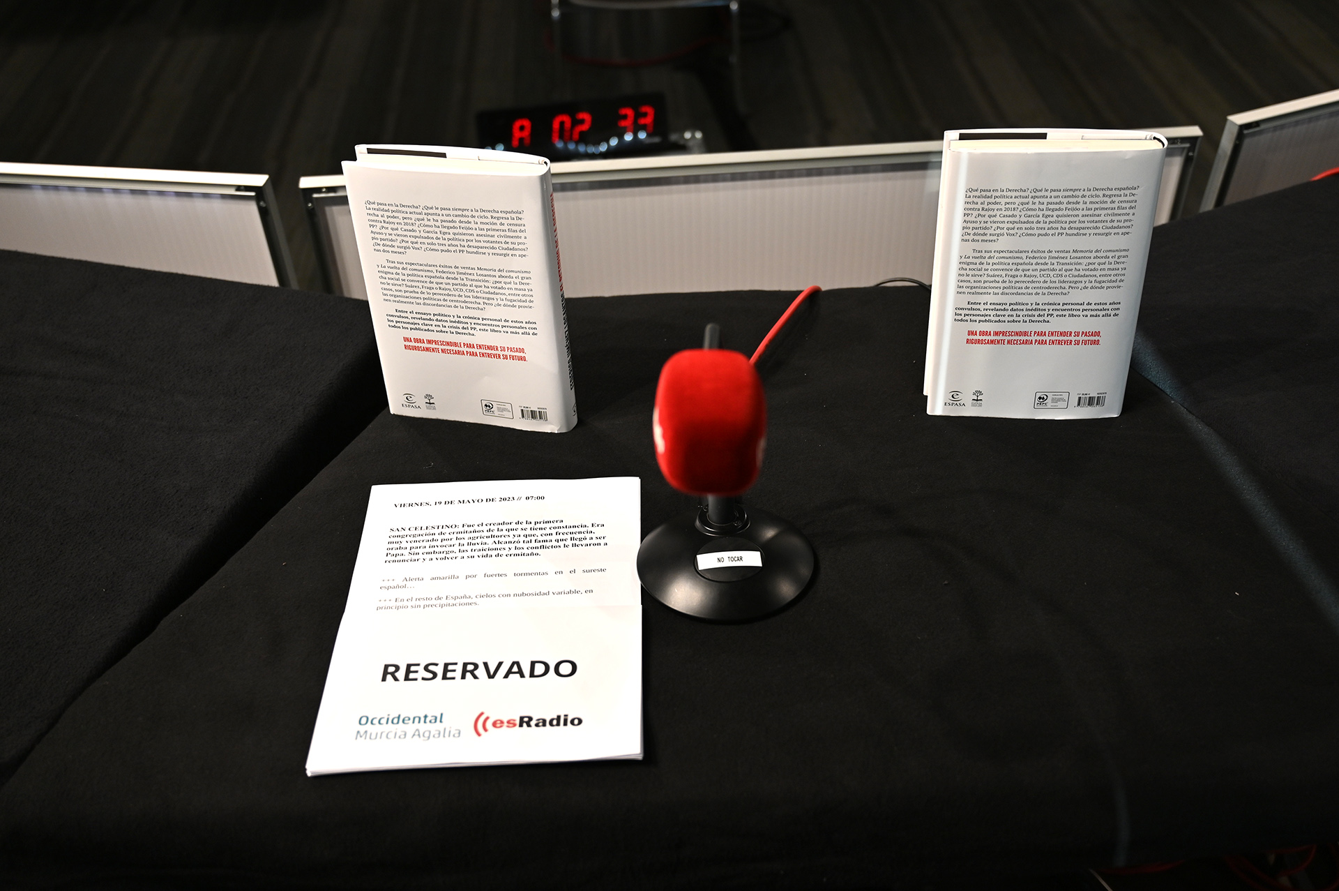Federico Jiménez Losantos y todo su equipo durante la emisión de Es la Mañana desde el auditorio del Hotel Occidental Murcia Agalia. Estas son las fotografías de momentos detrás de las cámaras y entre bambalinas.
