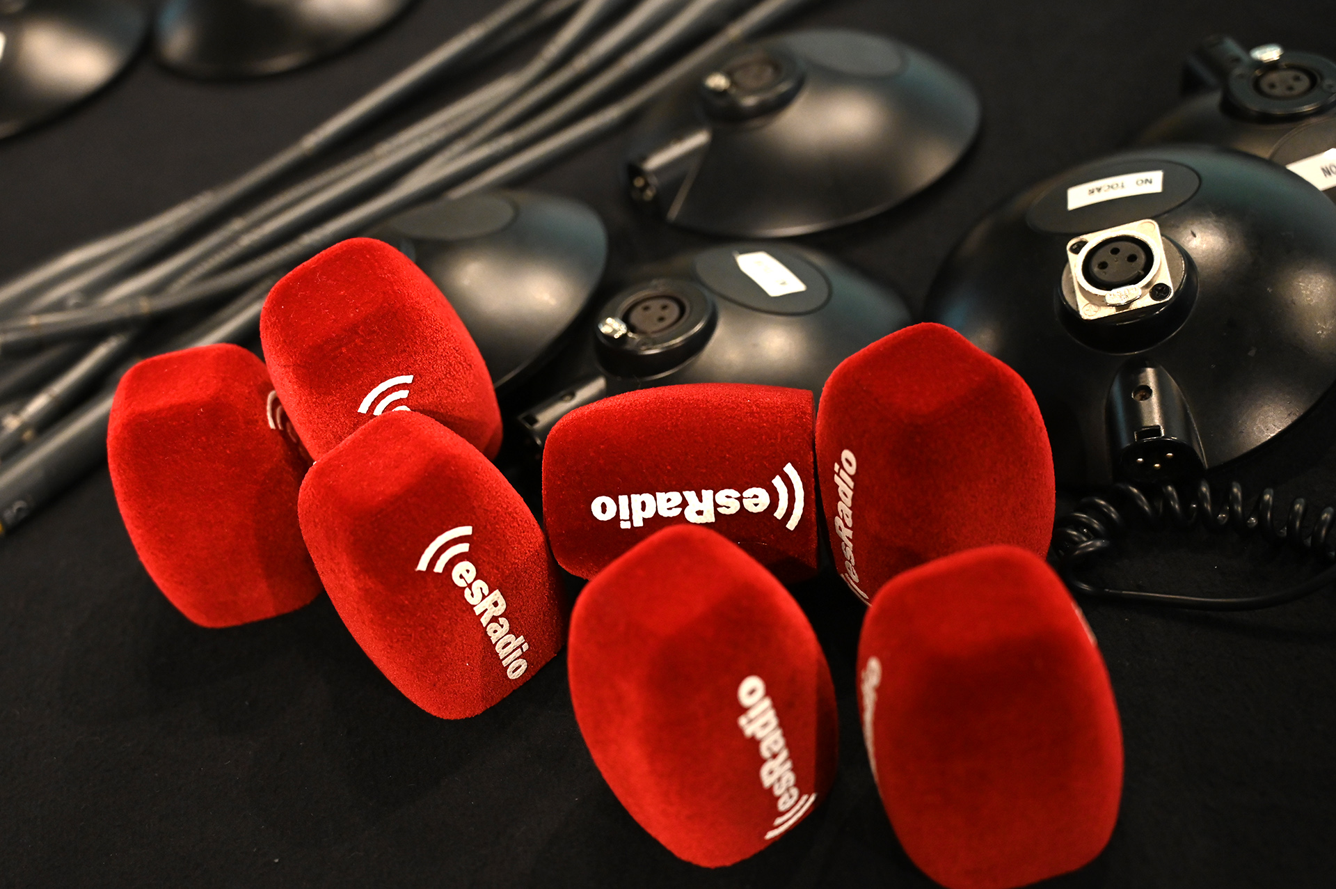 Micrófonos de esRadio y cables, herramientas imprescindibles del trabajo de los profesionales de la radio y del programa.