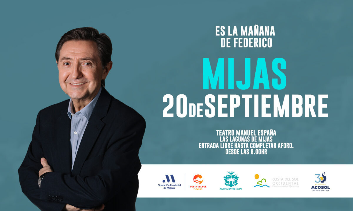 Los oyentes malagueños y de toda Andalucía de esRadio tienen la oportunidad de asistir en vivo y en directo a un programa muy especial de Es la Mañana de Federico el viernes 20 de septiembre en en el Teatro Manuel España, en las Lagunas de Mijas.