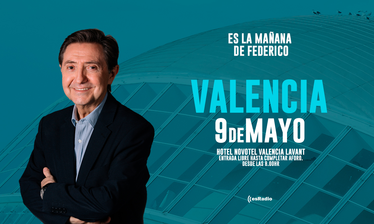Los oyentes de esRadio en la Comunidad Valenciana tienen una cita el próximo viernes 9 de mayo. El programa Es la Mañana de Federico, dirigido por Federico Jiménez Losantos, se emitirá en directo desde Valencia, desde el Hotel Novotel Valencia Lavant.