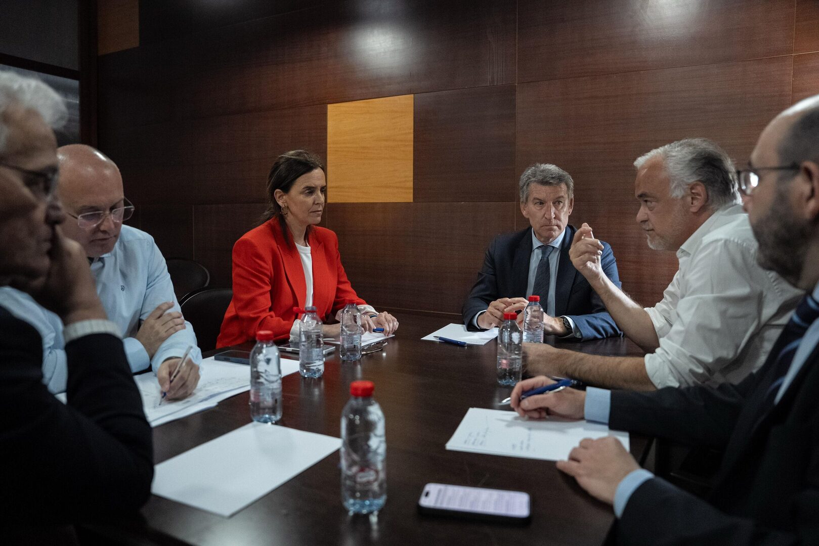 Alberto Núñez Feijóo reunido con Miguel Tellado, Carmen Fúnez y Esteban González Pons, en Valencia. | PP