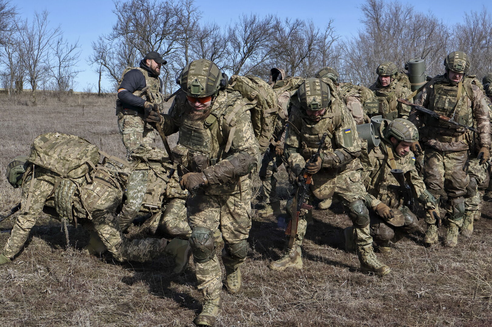 Reclutas de la 65.ª Brigada Mecanizada Separada durante una sesión de entrenamiento en un lugar no revelado de la región de Zaporizhzhia, Ucrania, el 22 de febrero de 2026. | EFE