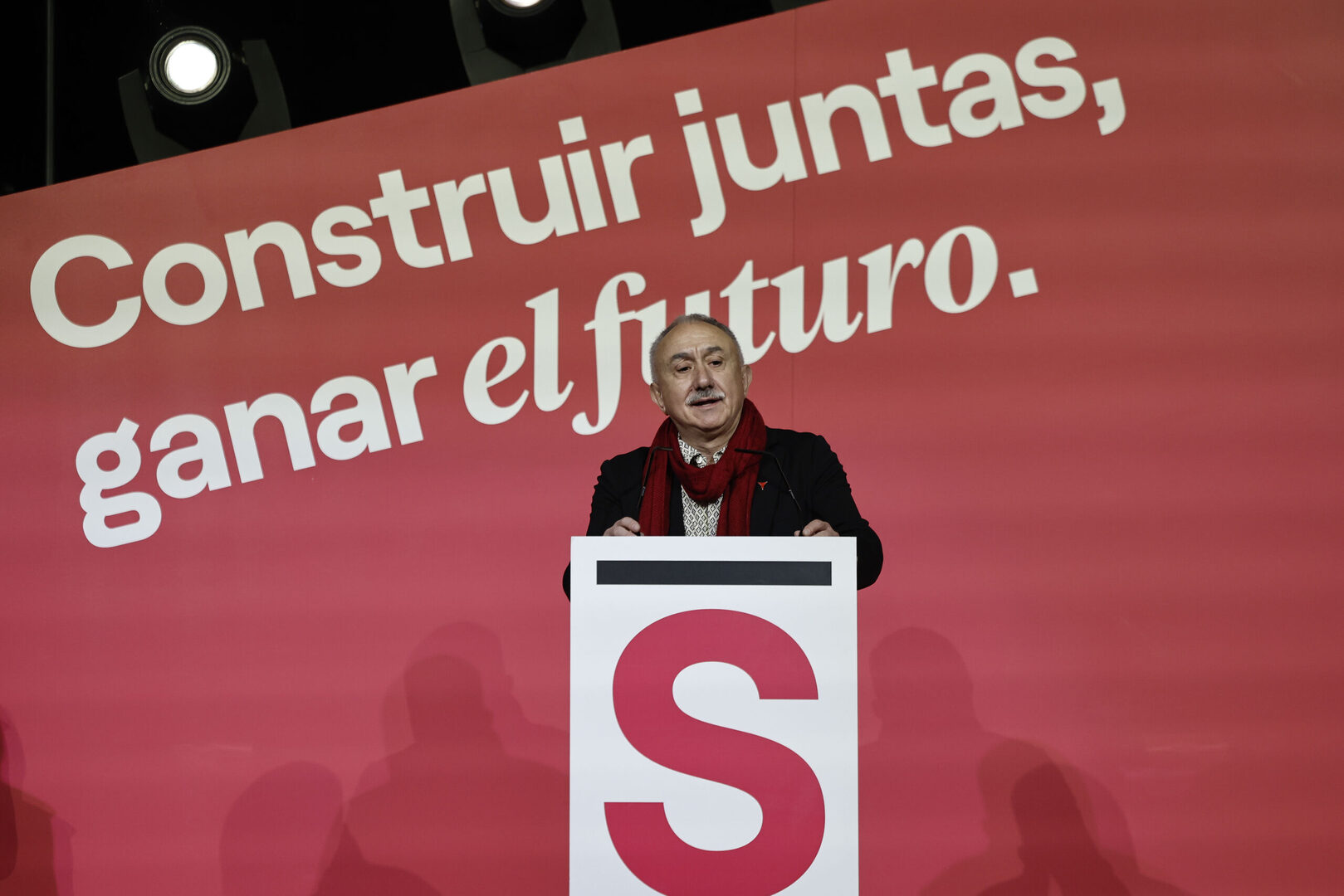 MADRID, 30/03/2025.- El secretario general de UGT, Pepe Álvarez, durante su intervención en clausura de la Asamblea general de Sumar, este domingo en Madrid. EFE/Sergio Pérez | EFE