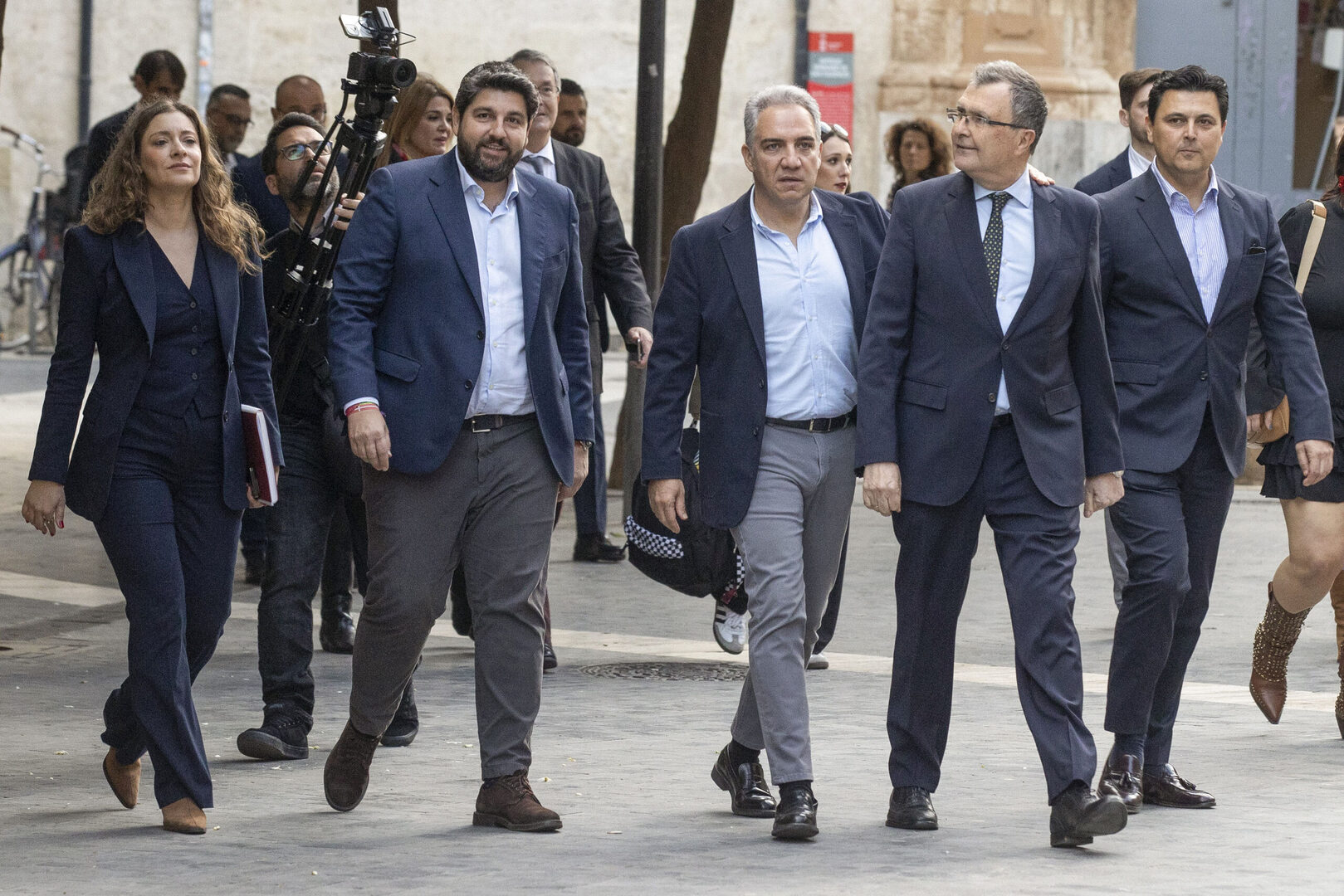 Fernando López Miras, Elías Bendodo, el alcalde de Murcia José Ballesta y la vicesecretaria de sanidad y educación, Ester Muñoz (i), en un acto reciente en Murcia. | EFE/Marcial Guillén