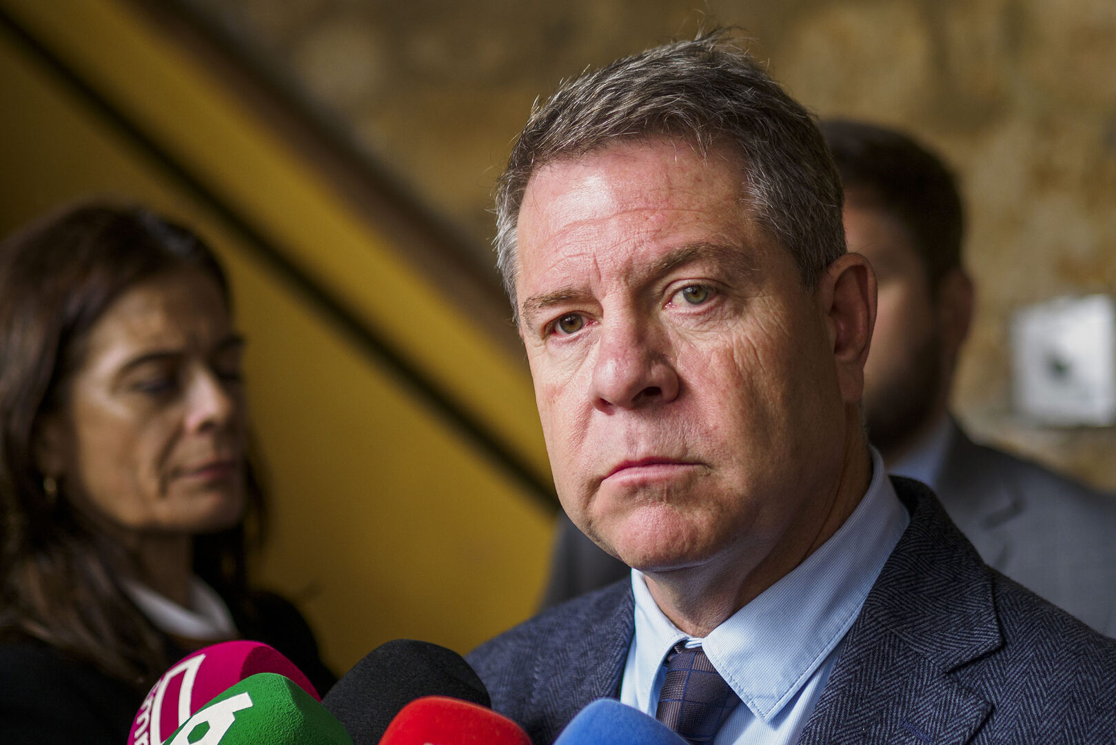 El presidente de Castilla-La Mancha, Emiliano García-Page, atiende a los medios en Cuenca. EFE/Álvaro del Olmo | EFE