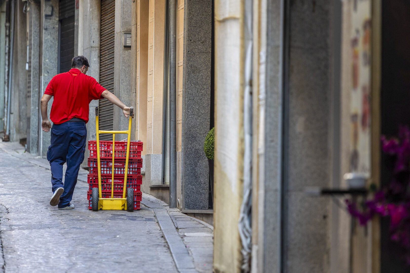 FOTODELDÍA TOLEDO, 02/07/2025.- Un repartidor trabaja en Toledo este miércoles. El empleo volvió a avanzar en junio, con 76.720 ocupados más, hasta un nuevo récord de 21,86 millones de afiliados, gracias al tirón del comercio y la hostelería que compensaron la pérdida en el sector educativo con el final de curso. EFE/ Ángeles Visdómine | EFE