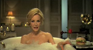 El anuncio de TV, según Cortázar, "parece de bombones, se ve a Carmen pasear por el palacio en bata, se mete en una bañera llena de pétalos de rosa y le traen la hamburguesa". Lomana sólo dice una frase en todo el anuncio: "A la parrilla, como me gusta".