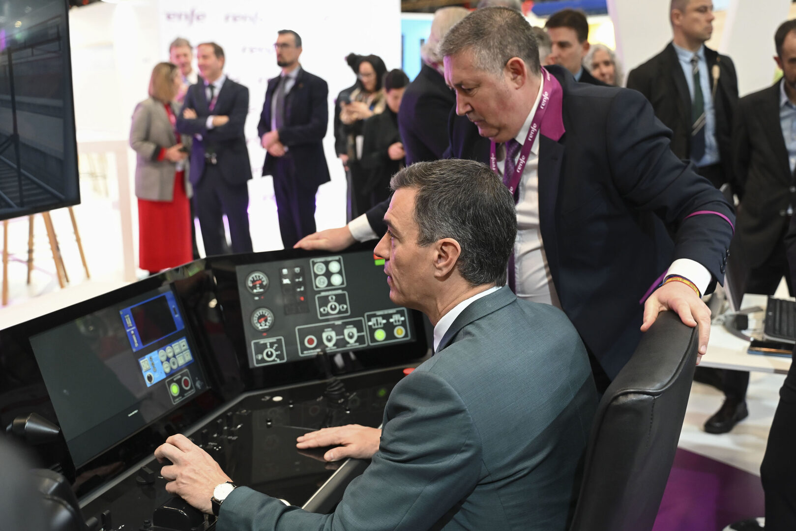 El presidente del Gobierno, Pedro Sánchez, visitando el estand de Renfe, en la Feria Internacional de Turismo. | EFE